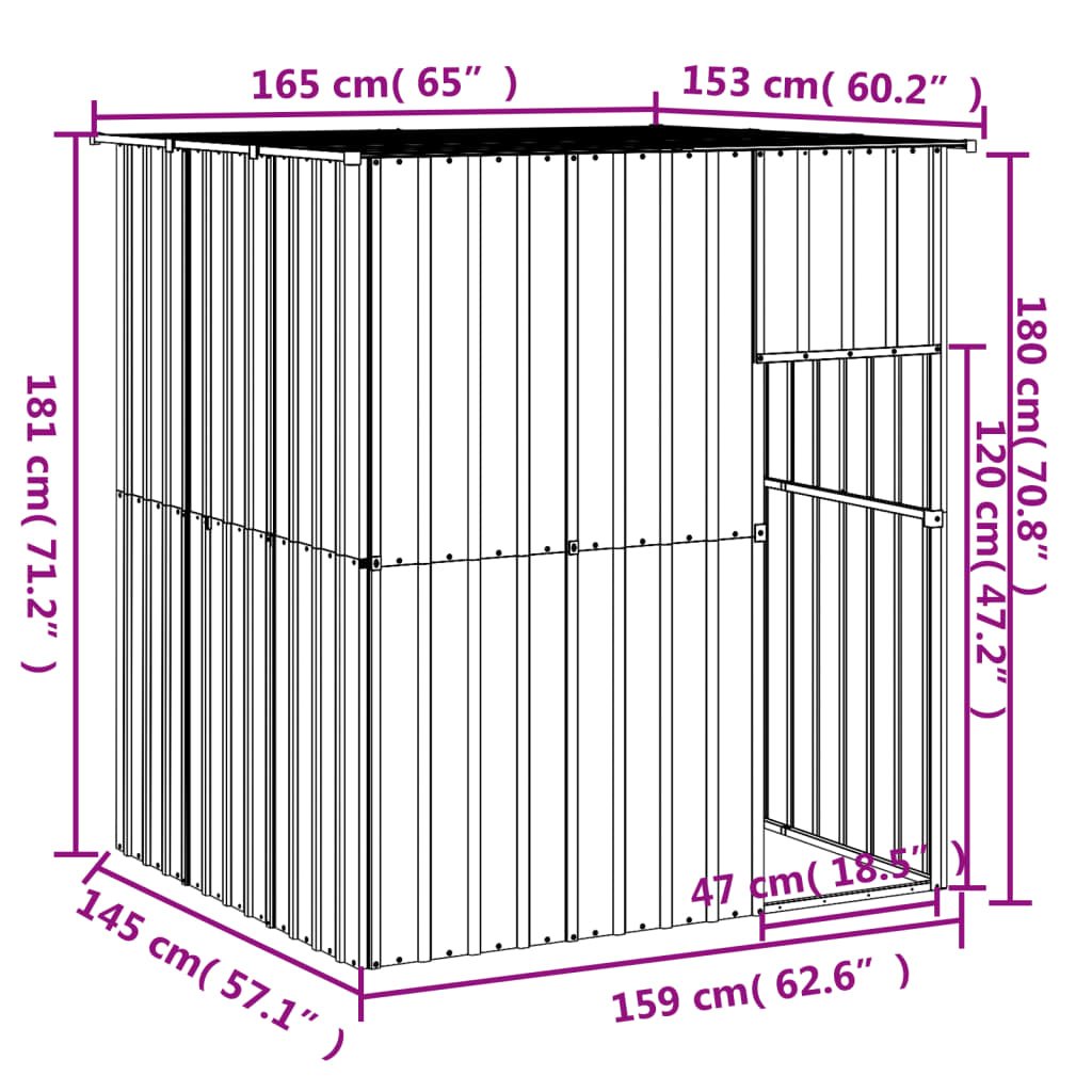 Psí bouda se střechou antracitová 165 x 153 x 181 cm ocel 172363