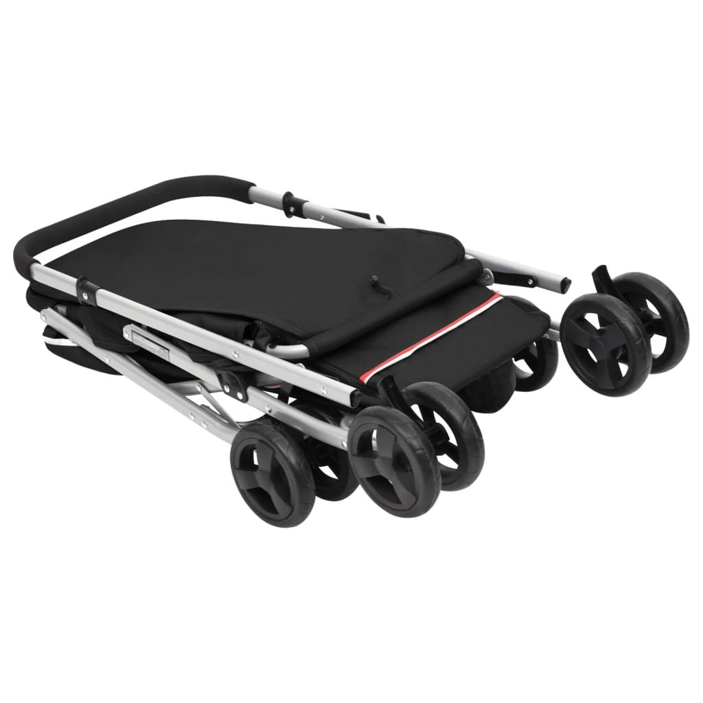 Skládací kočárek pro psa černý 100 x 49 x 96 cm lněná tkanina 172202
