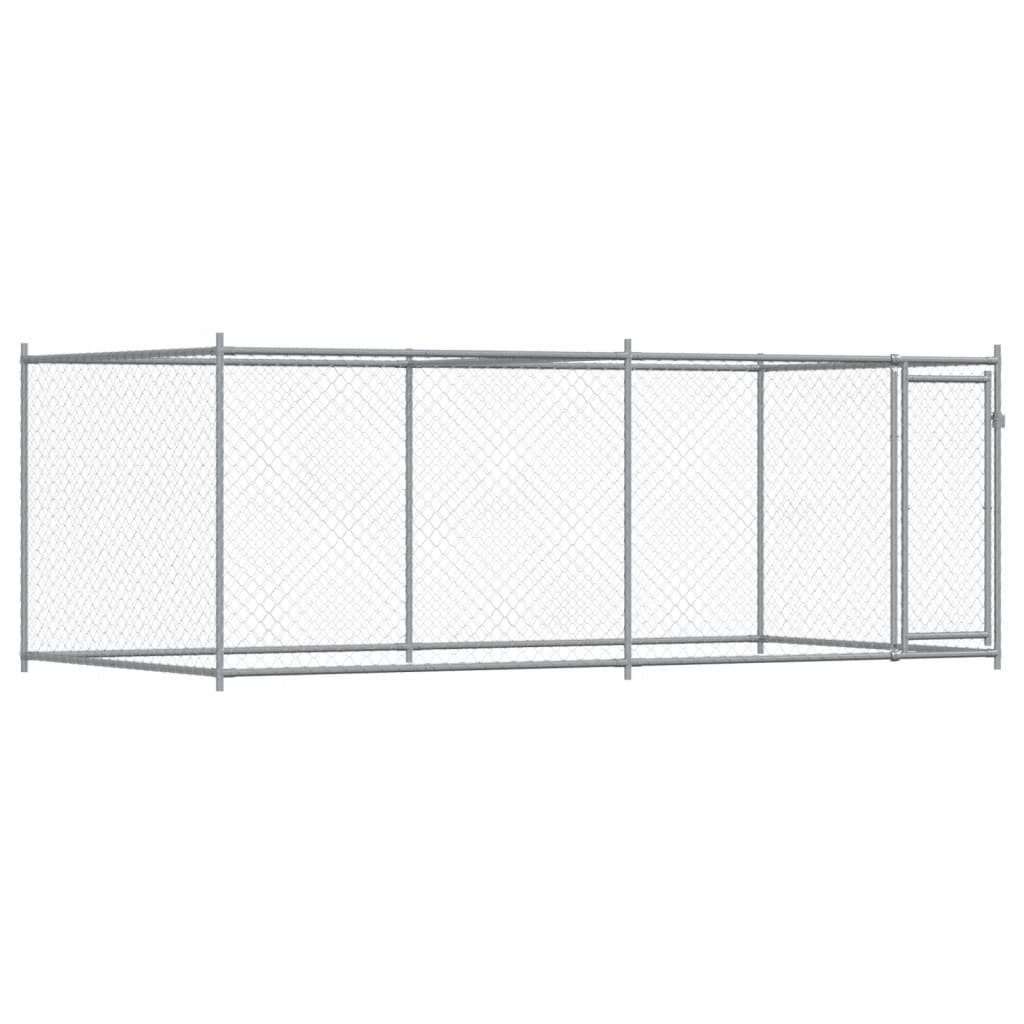 Klec pro psy s dvířky šedá 4 x 2 x 1,5 m pozinkovaná ocel 3209578