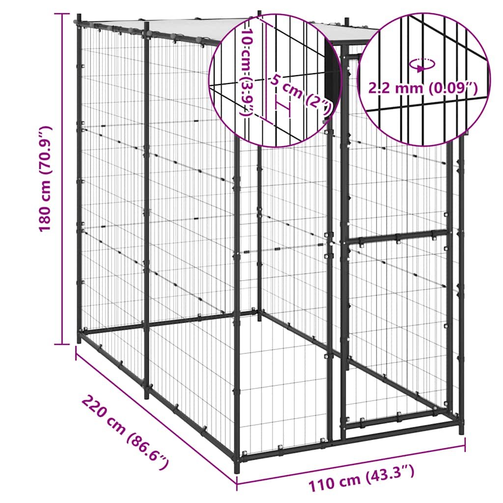 Venkovní psí kotec se střechou 110 x 220 x 180 cm 150795