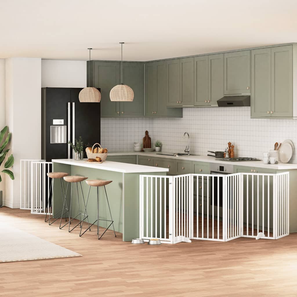 Zábrana pro psy s dvířky skládací 12 panelů bílá 600 cm topol 3155539