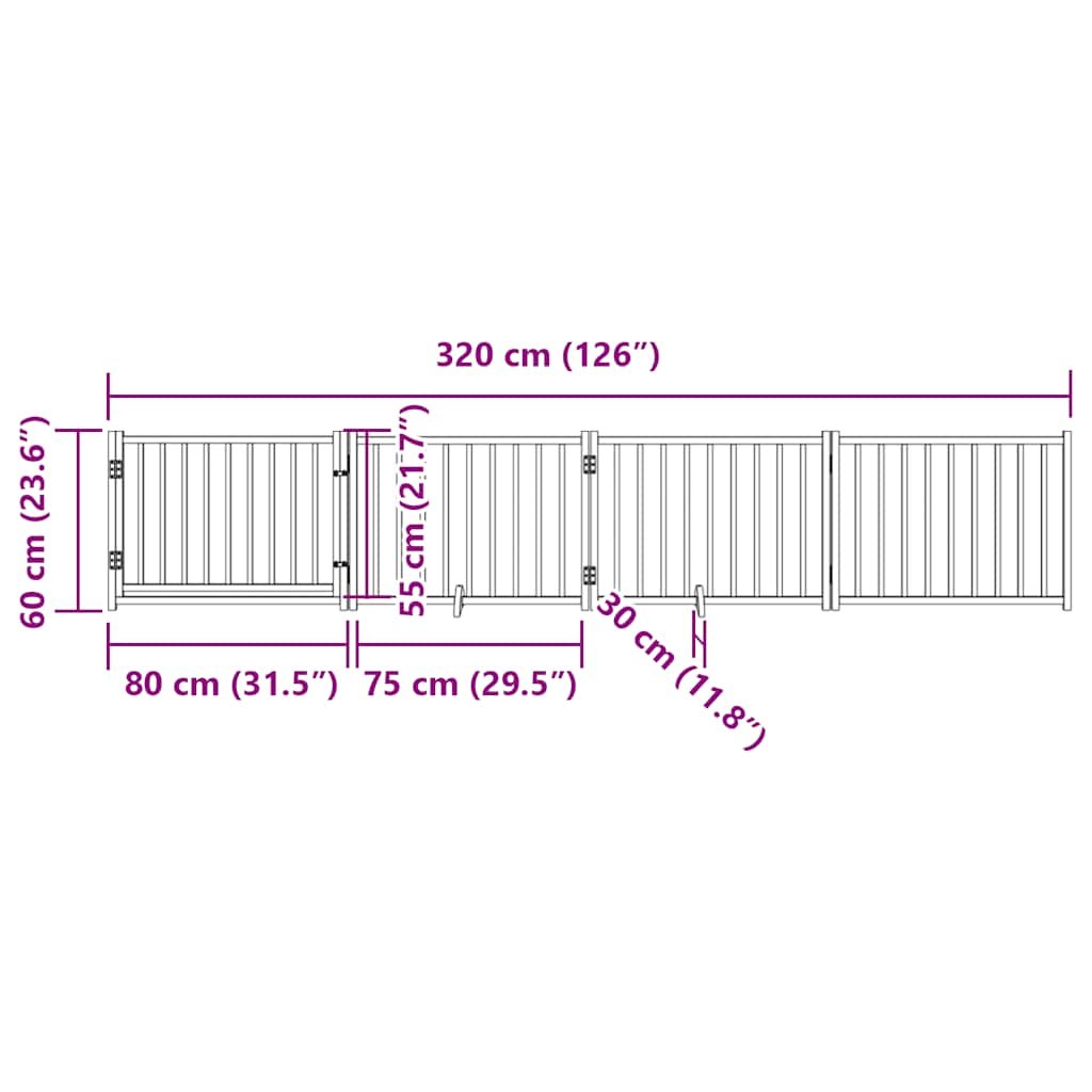 Zábrana pro psy s dvířky skládací 4 panely 320 cm masivní jedle 352273