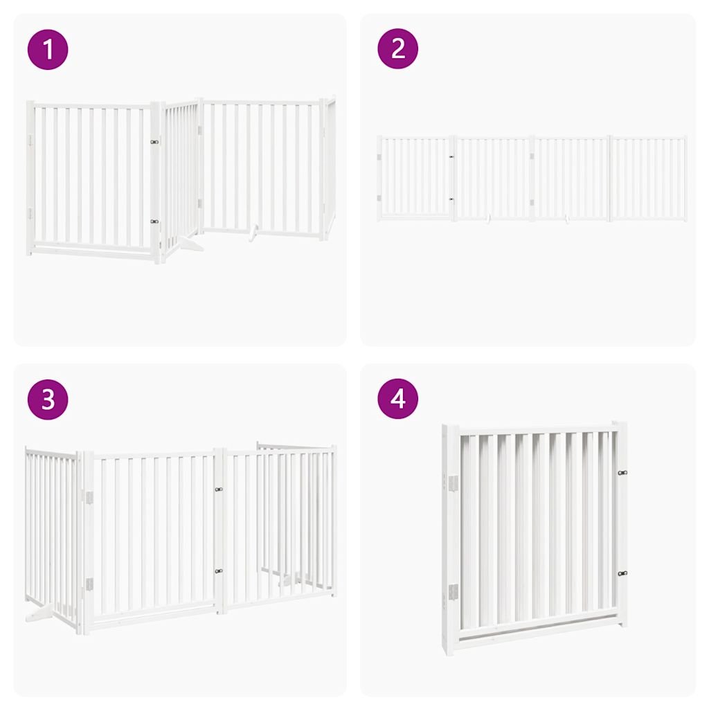 Zábrana pro psy s dvířky skládací 4 panely bílá 320 cm jedle 352283