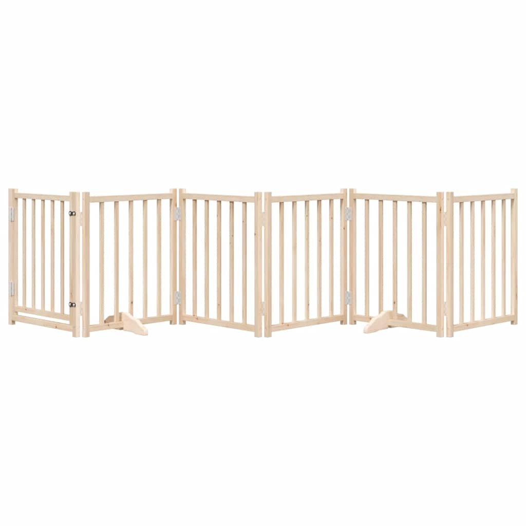 Zábrana pro psy s dvířky skládací 6 panelů 300 cm masivní jedle 352269