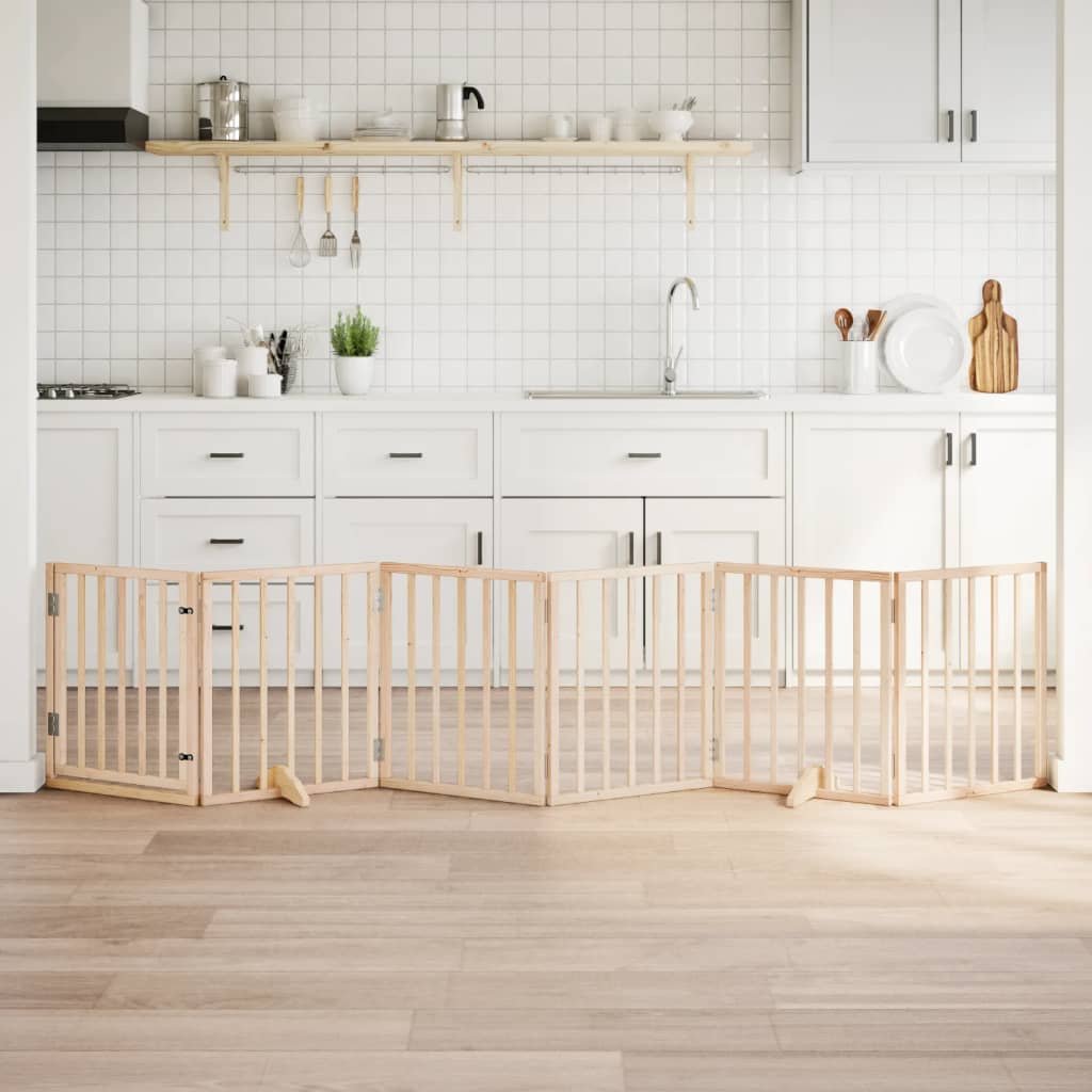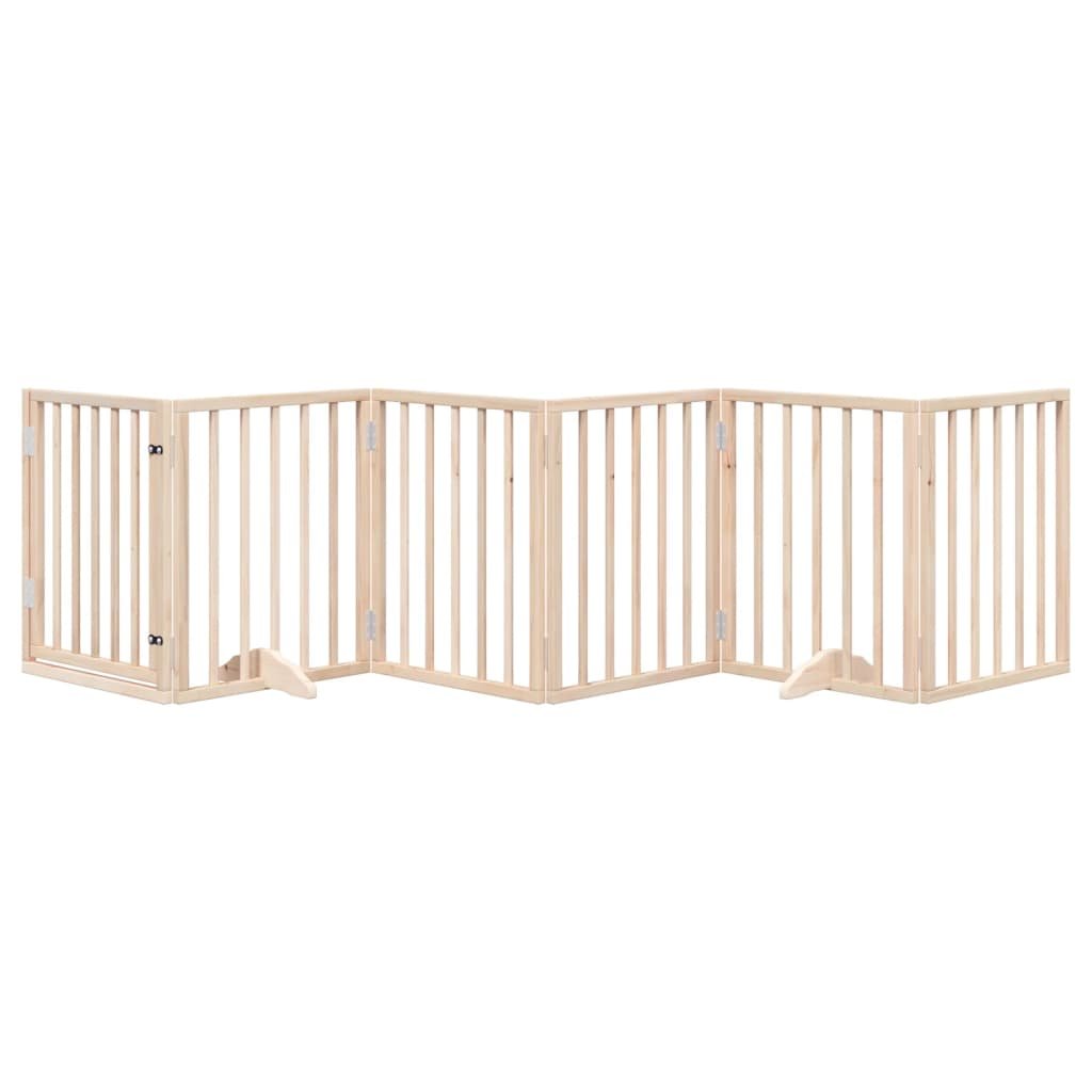 Zábrana pro psy s dvířky skládací 6 panelů 300cm topolové dřevo 352173