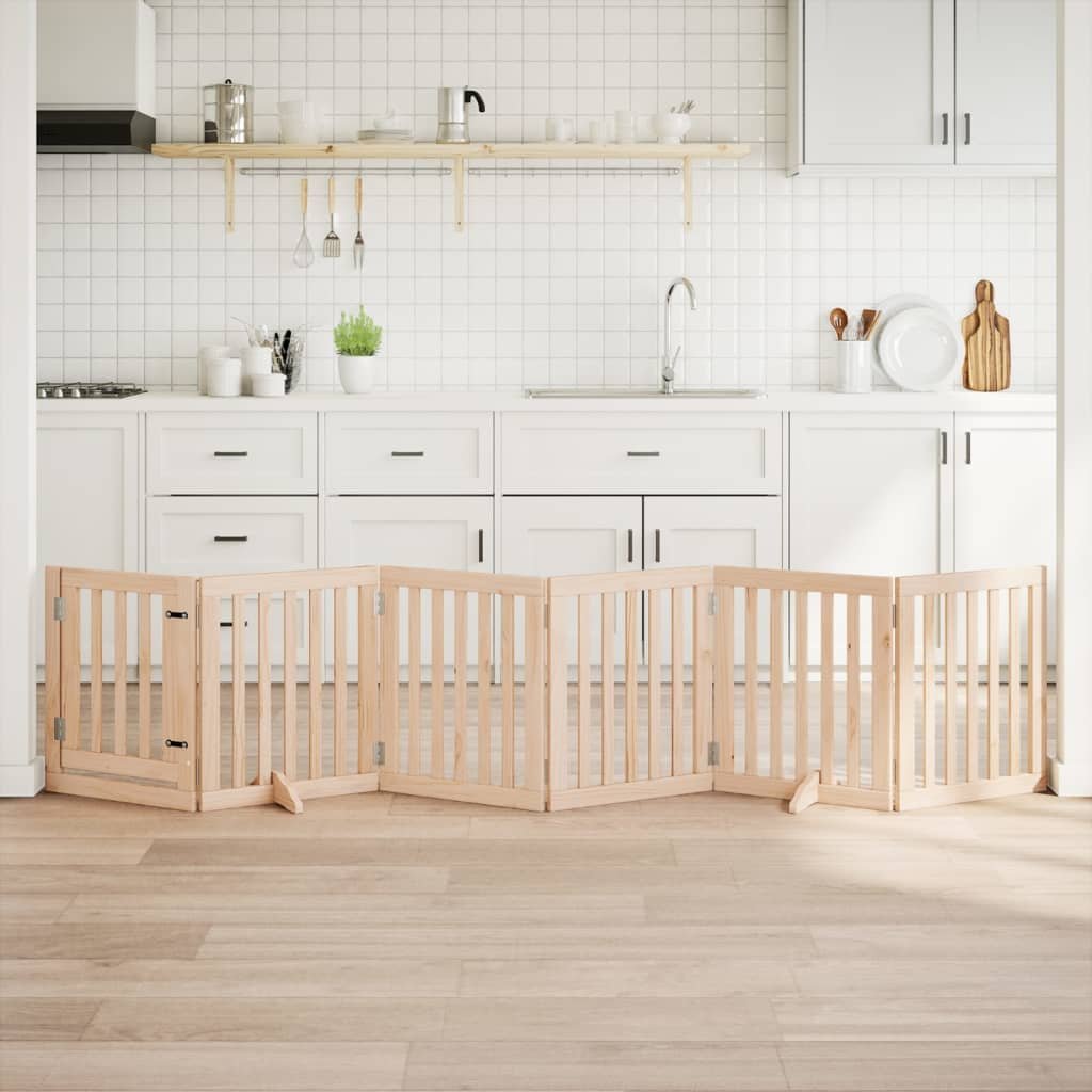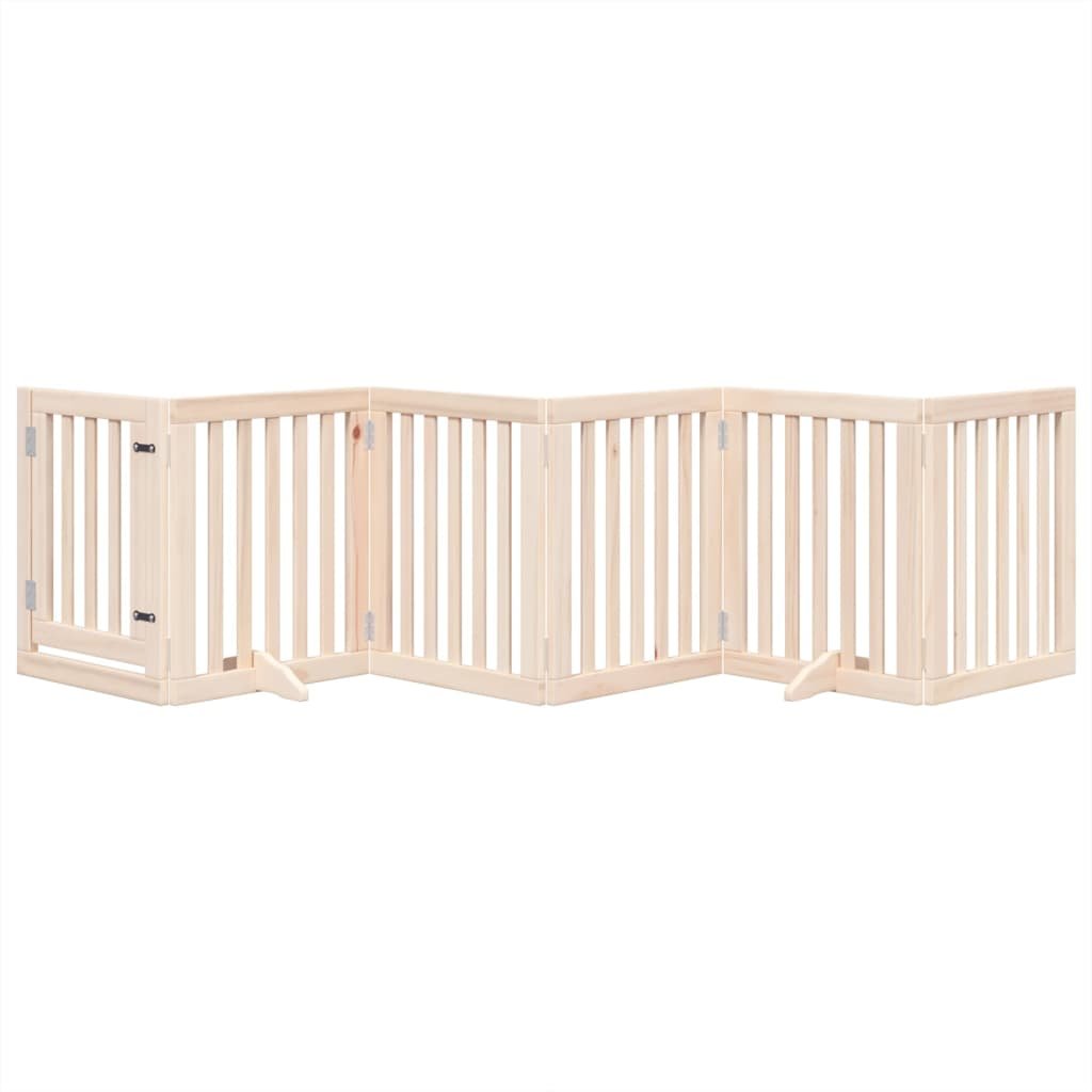 Zábrana pro psy s dvířky skládací 6 panelů 300cm topolové dřevo 352237