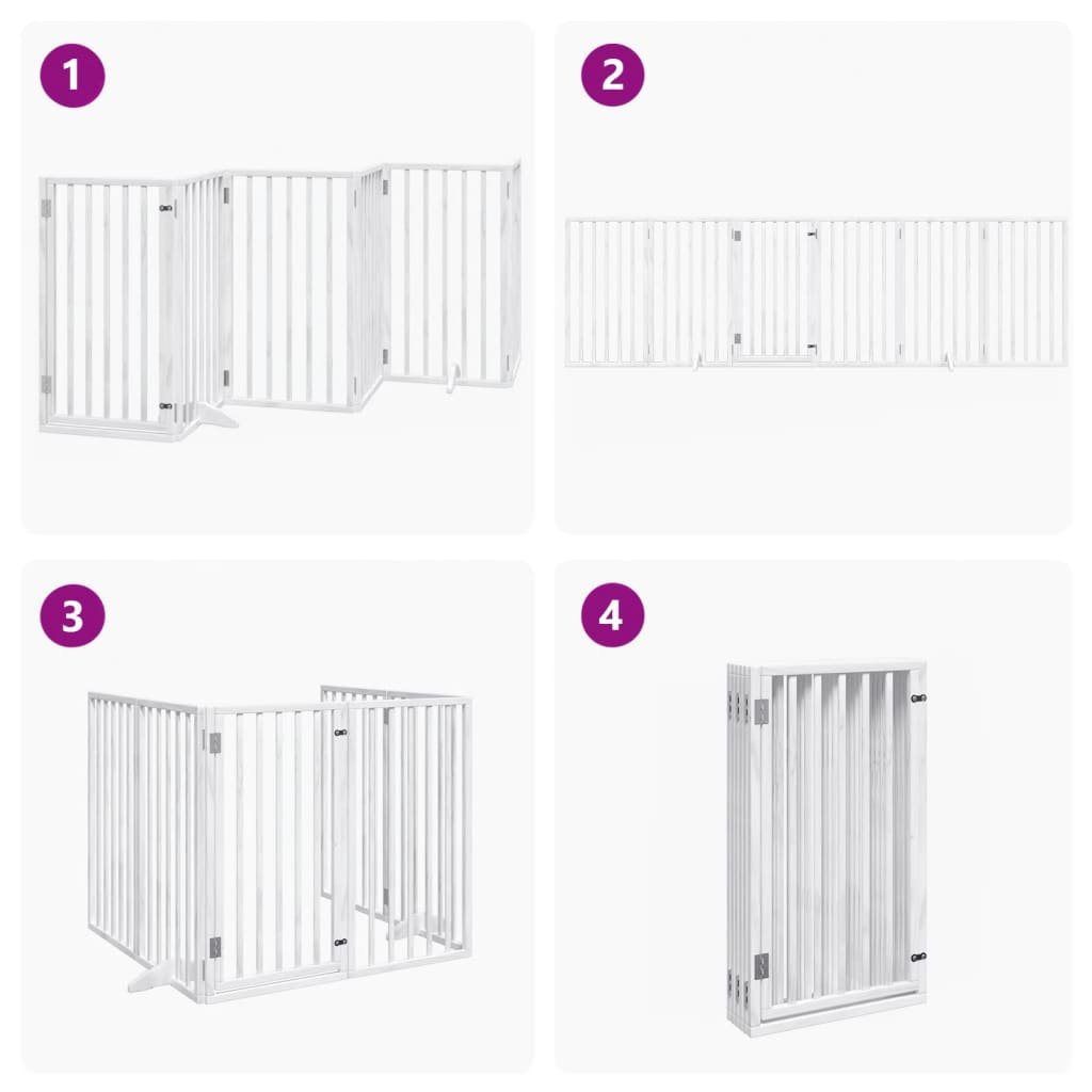 Zábrana pro psy s dvířky skládací 6 panelů bílá 300 cm topol 352183