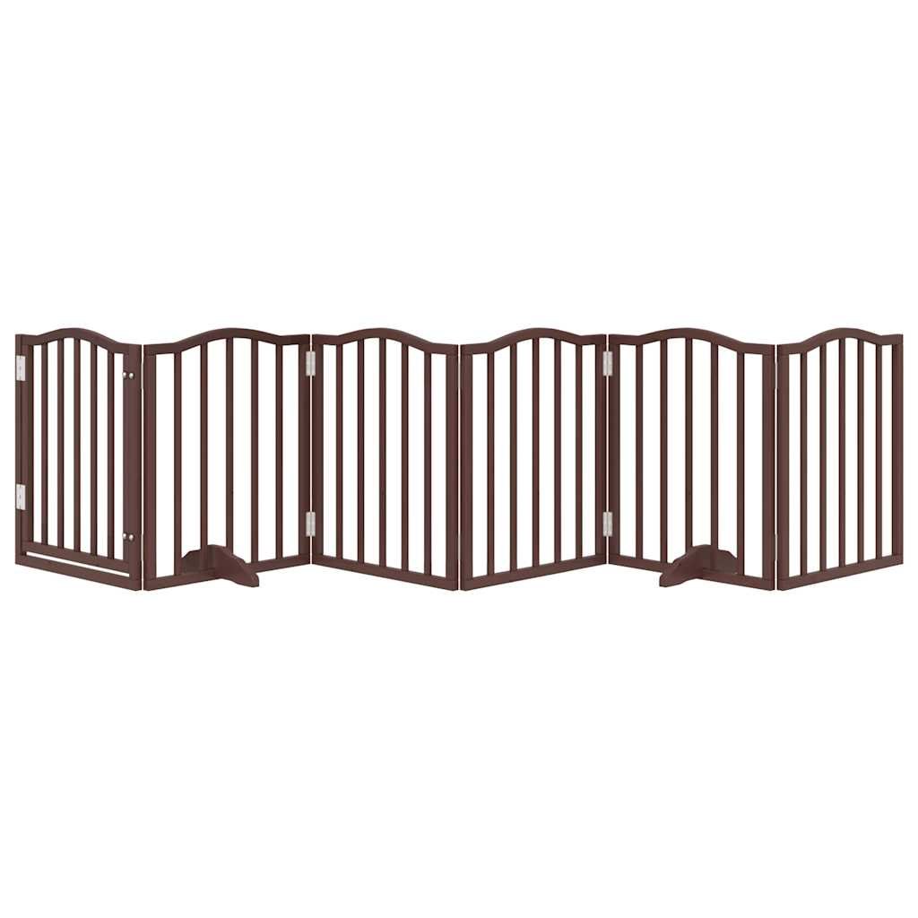 Zábrana pro psy s dvířky skládací 6 panelů hnědý dub 300 cm 352229