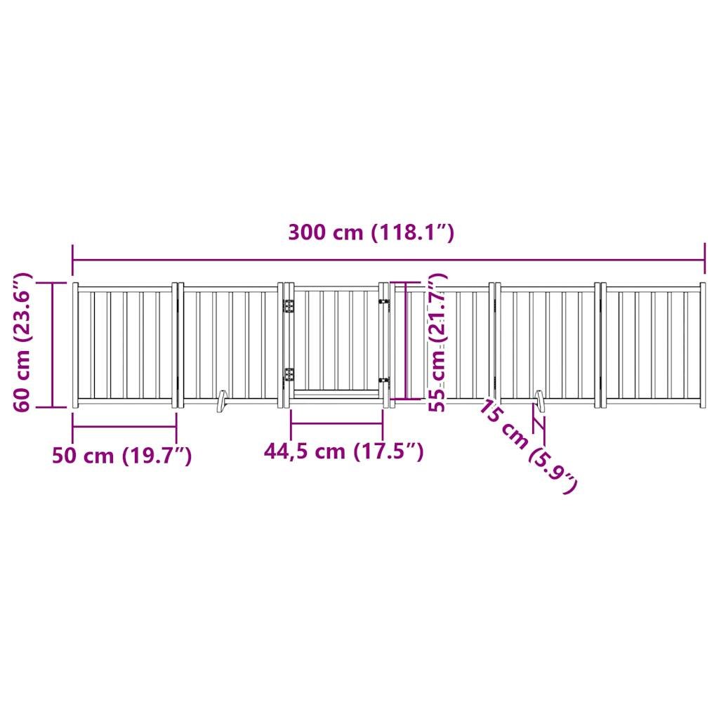 Zábrana pro psy s dvířky skládací 6 panelů hnědý dub 300 cm 352293