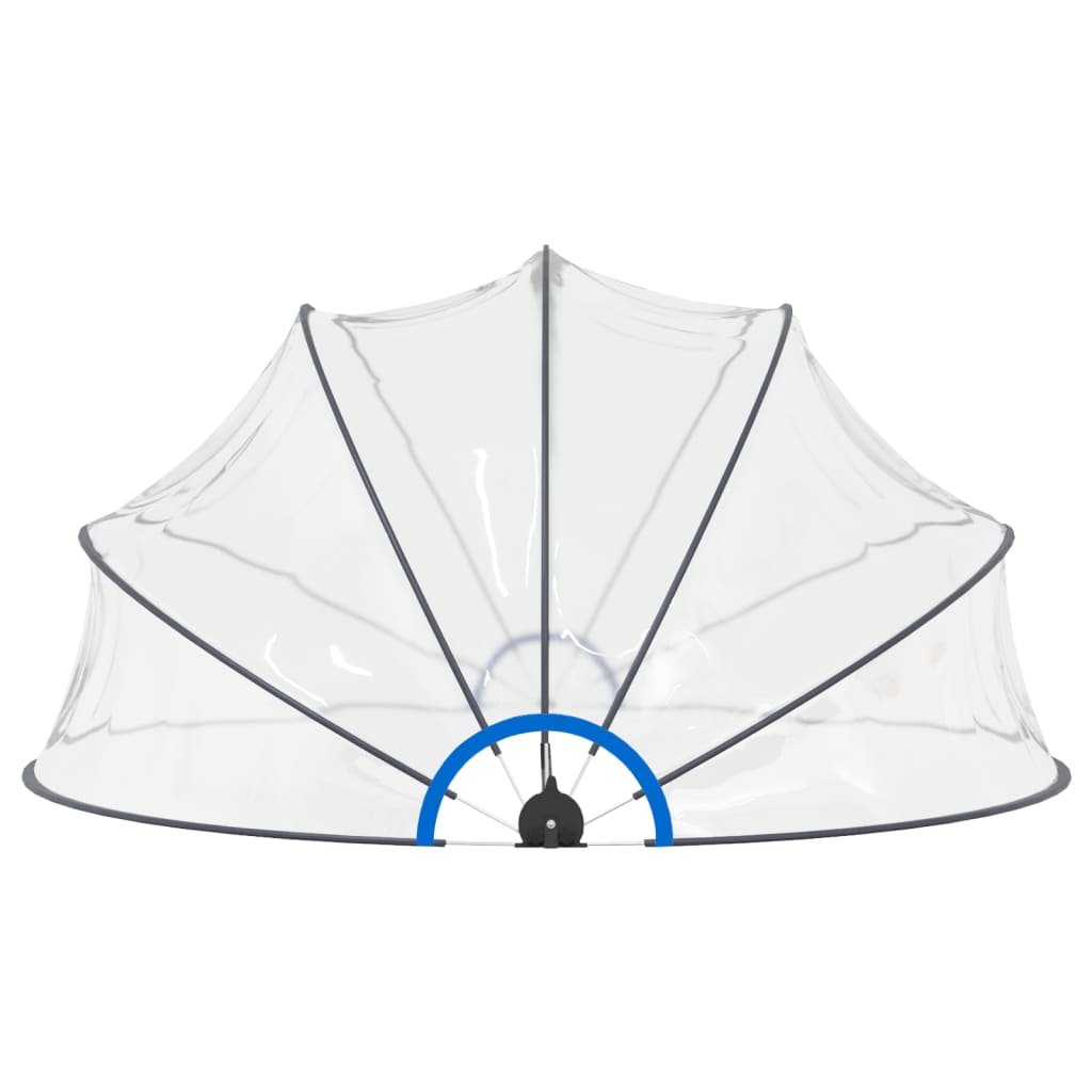 Kryt na bazén je vyrobený z PVC UPF 30 a má konstrukci ze sklolaminátu, poskytne tedy dokonalou ochranu před sluncem a deštěm. Zabrání také, aby do bazénu zvenku pronikly nečistoty, jako je listí, hmyz a prach. Pokud je to nutné, zaručí také rychlejší ohřev vody a sníží tepelné ztráty během noci. Kopule s unikátním systémem se závěsy se snadno otvírá a zavírá. A jelikož je transparentní, umožňuje dobrý výhled po okolí bazénu. K pevnému ukotvení kopule do země se dodávají zemní hroty a kotvicí háky do země. Nemusíte se tedy obávat, že kopuli bazénu odnese vítr.