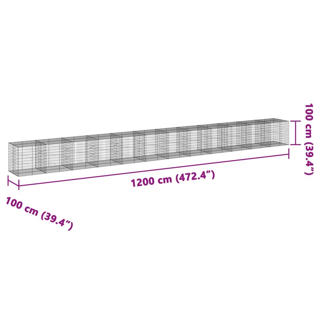 Gabionový koš s víkem 1 200 x 100 x 100 cm pozinkované železo 3295212