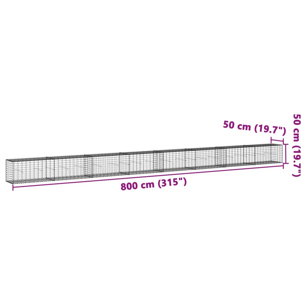 Gabionový koš s víkem 800 x 50 x 50 cm pozinkované železo 3295139