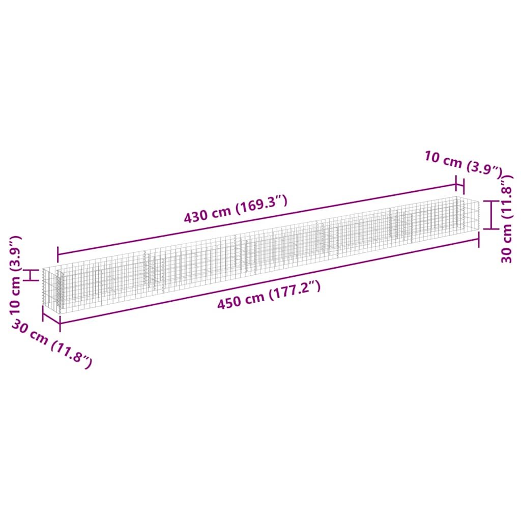 Gabionový vyvýšený záhon pozinkovaná ocel 450 x 30 x 30 cm 145645