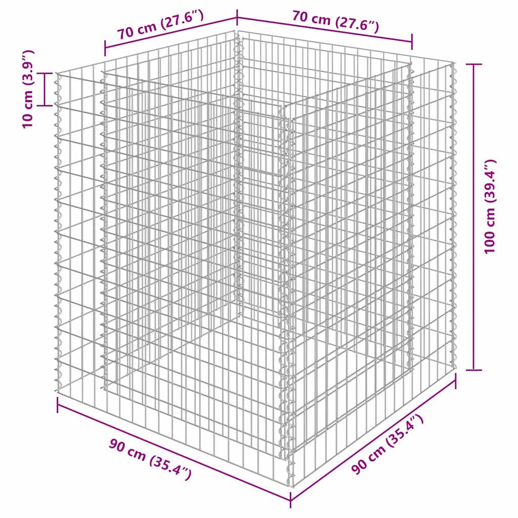 Robustní gabion je určen k tomu, aby byl naplněn kameny nebo štěrkem. Je vyrobený z nerezavějící pozinkované oceli, která nepodléhá povětrnostním vlivům, takže vysoký záhon je velmi stabilní a odolný. Síťová mřížka je tvořená svislými a vodorovnými dráty, které jsou ve všech spojích svařené, aby se tak zajistila mimořádná pevnost.