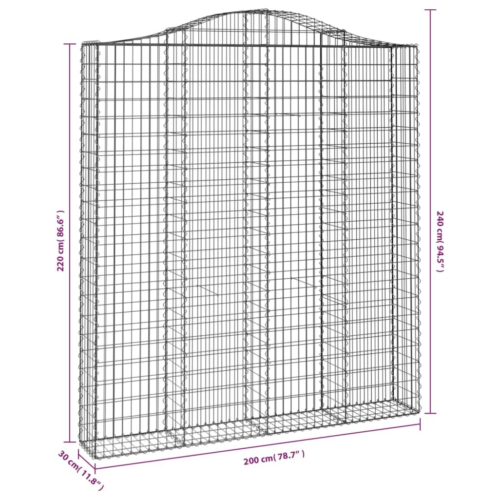 Klenuté gabionové koše 2 ks 200x30x220/240cm pozinkované železo 3145556