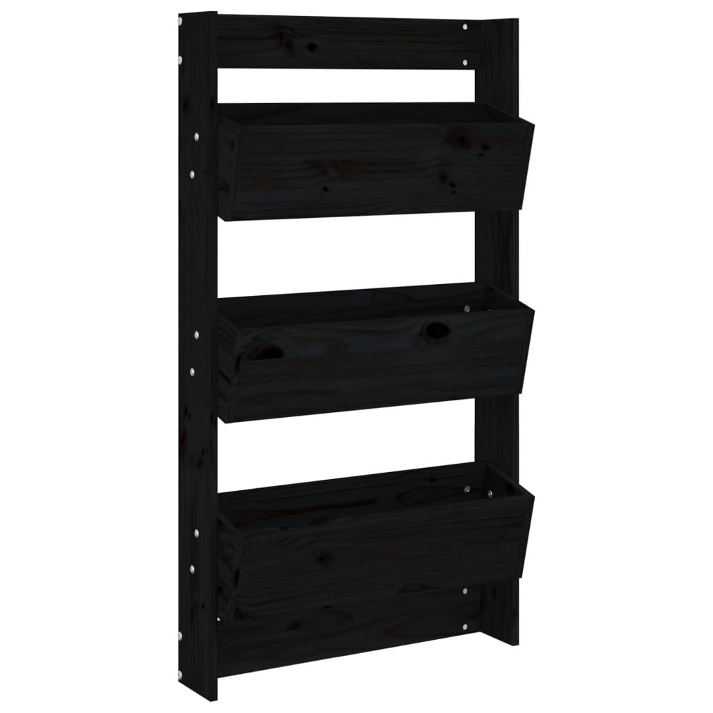 Nástěnný truhlík 3patrový 60x18,5x110 cm černý masivní borovice 825118