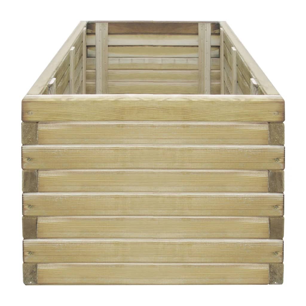 Tento dřevěný truhlík je vyrobený z vysoce kvalitního borového dřeva se zelenou impregnací, takže je velmi robustní, odolný vůči hnilobě a má dlouhou životnost. Dvě dřevěné nohy na spodní straně zlepšují stabilitu truhlíku. Montáž je opravdu snadná.