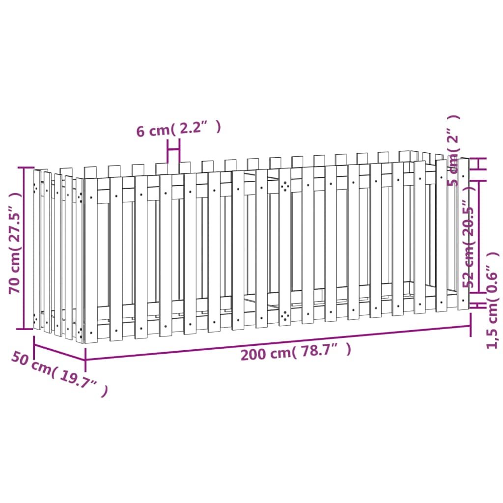 Vyvýšený záhon plotový design 200 x 50 x 70 cm masivní borovice 832512