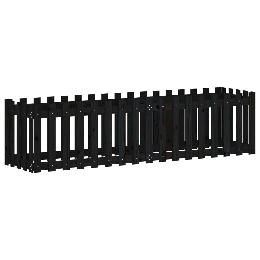 Vyvýšený záhon plotový design černý 200x50x50 cm masiv borovice 832509