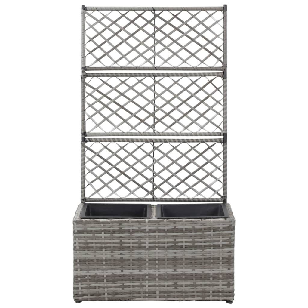 Vyvýšený záhon s treláží 2 květníky 30x30x107 cm polyratan šedý 46934