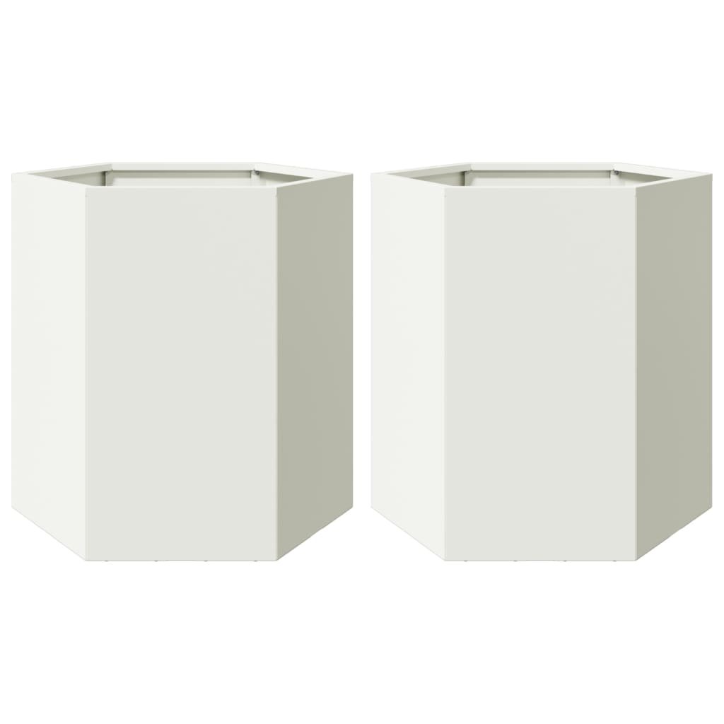 Zahradní květináče 2 ks bílé šestihranné 46x40x45 cm ocel 851111