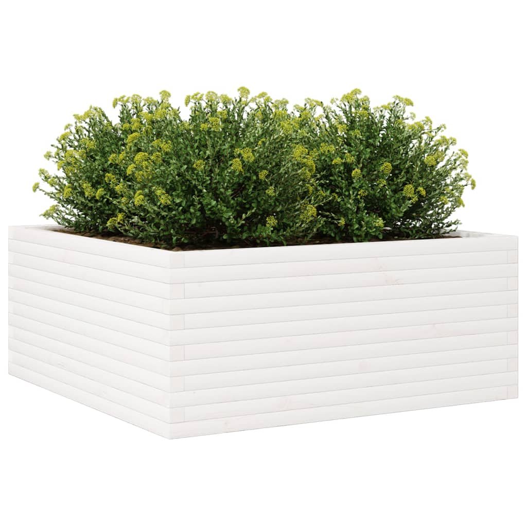 Zahradní truhlík bílý 110 x 110 x 46 cm masivní borové dřevo 3282435