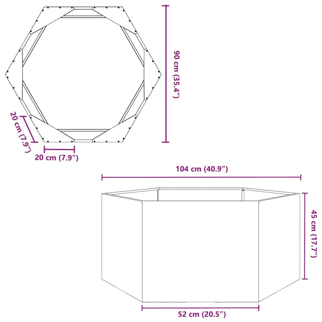 Zahradní truhlík olivový šestihranný 104 x 90 x 45 cm ocel 851132