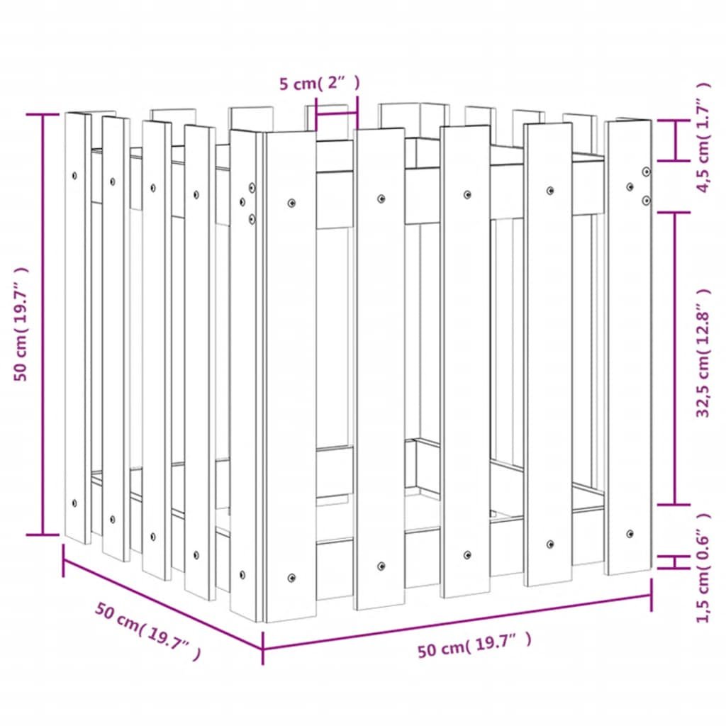 Zahradní truhlík plotový design bílý 50x50x50 cm masiv borovice 832453