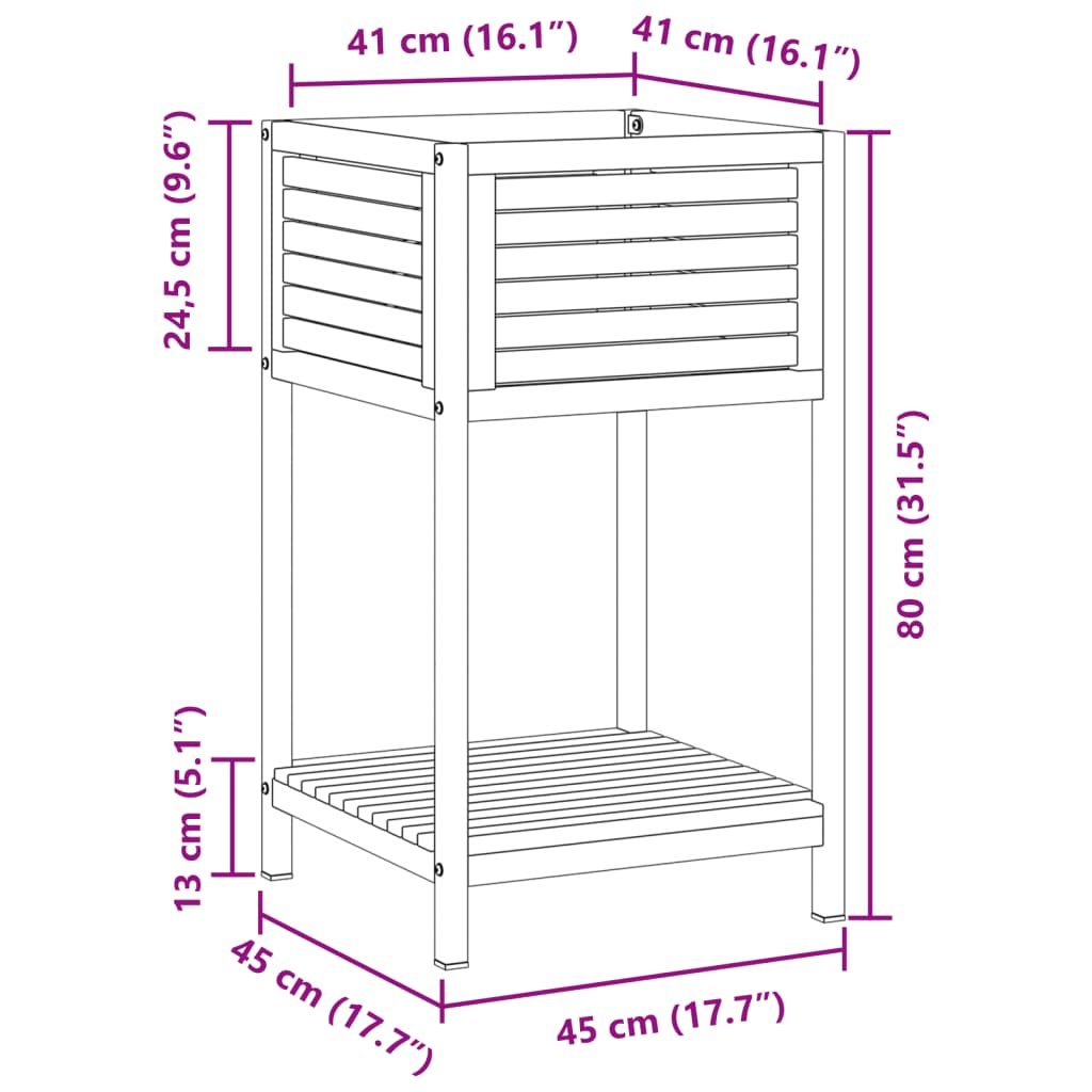 Zahradní truhlík s policí 45 x 45 x 80 cm masivní akácie a ocel 367616