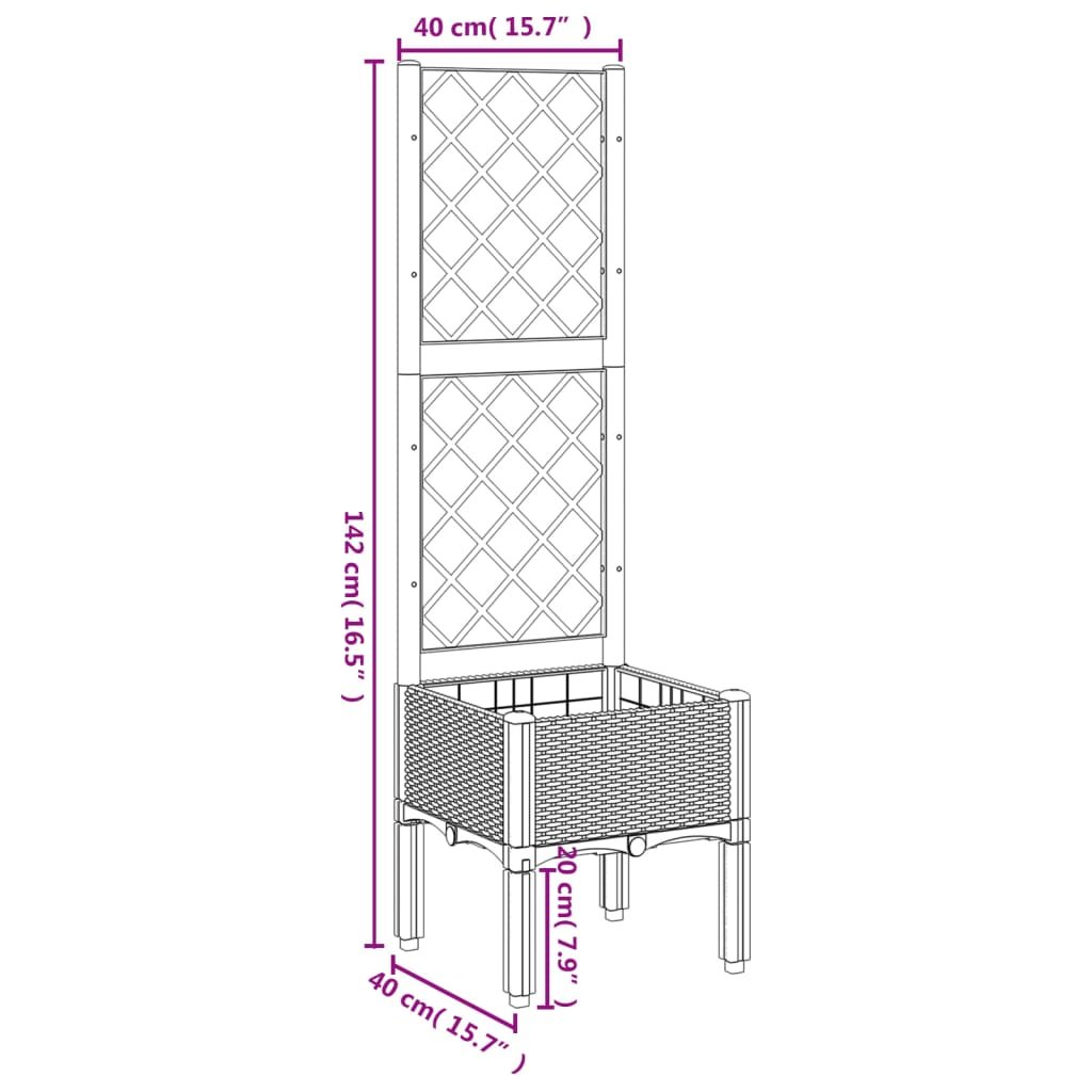 Zahradní truhlík s treláží hnědý 40 x 40 x 142 cm PP 367920