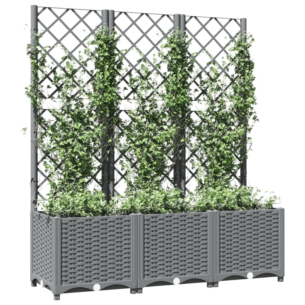 Zahradní truhlík s treláží světle šedý 120 x 40 x 136 cm PP 153274