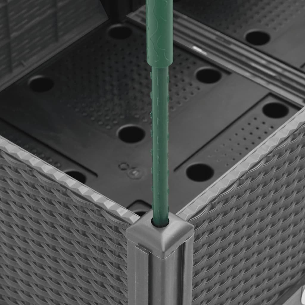 - Praktický design: Ideální dno pomáhá zadržovat vlhkost a umožňuje snadný odvod vody. Vestavěná treláž navíc nabízí oporu pro růst popínavých rostlin, jako jsou rajčata, hrášek nebo růže.