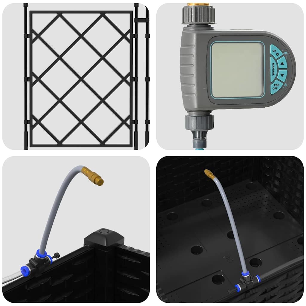 Materiál konstrukce: Zahradní květináč je vyroben z oceli odolné vůči UV záření, což zajišťuje trvanlivost a odolnost vůči povětrnostním změnám. Tato volba materiálu nabízí robustní ochranu, která vhodně odolává silnému slunečnímu záření a sezónním výkyvům, udržuje vaše rostliny naživu po celý rok bez kompromisů v strukturální integritě květináče.,Integrovaný zavlažovací systém: Tento zahradní květináč je vybaven pokročilým zavlažovacím systémem, který odstraňuje nejistotu při zalévání. Využívající integrované kanály, efektivně distribuuje vodu přímo k kořenům rostlin, což zajišťuje, že dostávají dostatečnou vlhkost, zatímco snižuje plýtvání vodou a podporuje zdravější růst.,Moderní design: Ukazuje chic tkaný vzor, elegantní jednoduchost tohoto květináče ladí s moderním estetickým pojetím. Jeho odrazivý matný povrch dodává jemný dotek, což mu umožňuje bez problémů zapadnout do různorodých venkovních prostředí i při zachování moderního stylu s čistými, decentními liniemi.,Všestranné použití: Ideální pro venkovní umístění, tento květináč má jak dekorativní, tak praktické účely. Jeho prostorný interiér pojme různé druhy rostlin, od bujných kapradin po živé květiny, což z něj činí vhodný pro sezónní přechody nebo celoroční použití, poskytující prvotřídní zkušenost s výsadbou pro koníčky i zkušené zahradníky.,Údržba a péče: Aby si zachoval svůj prvotřídní vzhled, umístěte tento květináč na stabilním místě a vyhněte se vystavení přímému slunečnímu záření po delší dobu. Pravidelně čistěte suchým hadříkem a zajišťujte spojení při sestavování, aby se zaručila stabilita a estetická hodnota v průběhu času.- Barva: Černá