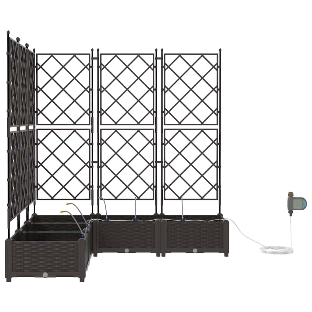 Materiál konstrukce: Zahradní květináč je vyroben z oceli odolné vůči UV záření, což zajišťuje trvanlivost a odolnost vůči povětrnostním změnám. Tato volba materiálu nabízí robustní ochranu, která vhodně odolává silnému slunečnímu záření a sezónním výkyvům, udržuje vaše rostliny naživu po celý rok bez kompromisů v strukturální integritě květináče.,Integrovaný zavlažovací systém: Tento zahradní květináč je vybaven pokročilým zavlažovacím systémem, který odstraňuje nejistotu při zalévání. Využívající integrované kanály, efektivně distribuuje vodu přímo k kořenům rostlin, což zajišťuje, že dostávají dostatečnou vlhkost, zatímco snižuje plýtvání vodou a podporuje zdravější růst.,Moderní design: Ukazuje chic tkaný vzor, elegantní jednoduchost tohoto květináče ladí s moderním estetickým pojetím. Jeho odrazivý matný povrch dodává jemný dotek, což mu umožňuje bez problémů zapadnout do různorodých venkovních prostředí i při zachování moderního stylu s čistými, decentními liniemi.,Všestranné použití: Ideální pro venkovní umístění, tento květináč má jak dekorativní, tak praktické účely. Jeho prostorný interiér pojme různé druhy rostlin, od bujných kapradin po živé květiny, což z něj činí vhodný pro sezónní přechody nebo celoroční použití, poskytující prvotřídní zkušenost s výsadbou pro koníčky i zkušené zahradníky.,Údržba a péče: Aby si zachoval svůj prvotřídní vzhled, umístěte tento květináč na stabilním místě a vyhněte se vystavení přímému slunečnímu záření po delší dobu. Pravidelně čistěte suchým hadříkem a zajišťujte spojení při sestavování, aby se zaručila stabilita a estetická hodnota v průběhu času.- Barva: Hnědá