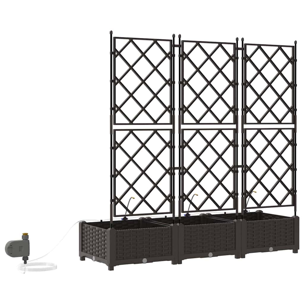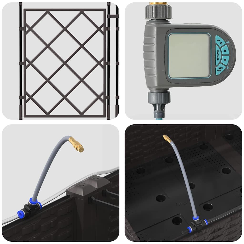 Materiál konstrukce: Zahradní květináč je vyroben z oceli odolné vůči UV záření, což zajišťuje trvanlivost a odolnost vůči povětrnostním změnám. Tato volba materiálu nabízí robustní ochranu, která vhodně odolává silnému slunečnímu záření a sezónním výkyvům, udržuje vaše rostliny naživu po celý rok bez kompromisů v strukturální integritě květináče.,Integrovaný zavlažovací systém: Tento zahradní květináč je vybaven pokročilým zavlažovacím systémem, který odstraňuje nejistotu při zalévání. Využívající integrované kanály, efektivně distribuuje vodu přímo k kořenům rostlin, což zajišťuje, že dostávají dostatečnou vlhkost, zatímco snižuje plýtvání vodou a podporuje zdravější růst.,Moderní design: Ukazuje chic tkaný vzor, elegantní jednoduchost tohoto květináče ladí s moderním estetickým pojetím. Jeho odrazivý matný povrch dodává jemný dotek, což mu umožňuje bez problémů zapadnout do různorodých venkovních prostředí i při zachování moderního stylu s čistými, decentními liniemi.,Všestranné použití: Ideální pro venkovní umístění, tento květináč má jak dekorativní, tak praktické účely. Jeho prostorný interiér pojme různé druhy rostlin, od bujných kapradin po živé květiny, což z něj činí vhodný pro sezónní přechody nebo celoroční použití, poskytující prvotřídní zkušenost s výsadbou pro koníčky i zkušené zahradníky.,Údržba a péče: Aby si zachoval svůj prvotřídní vzhled, umístěte tento květináč na stabilním místě a vyhněte se vystavení přímému slunečnímu záření po delší dobu. Pravidelně čistěte suchým hadříkem a zajišťujte spojení při sestavování, aby se zaručila stabilita a estetická hodnota v průběhu času.- Barva: Hnědá