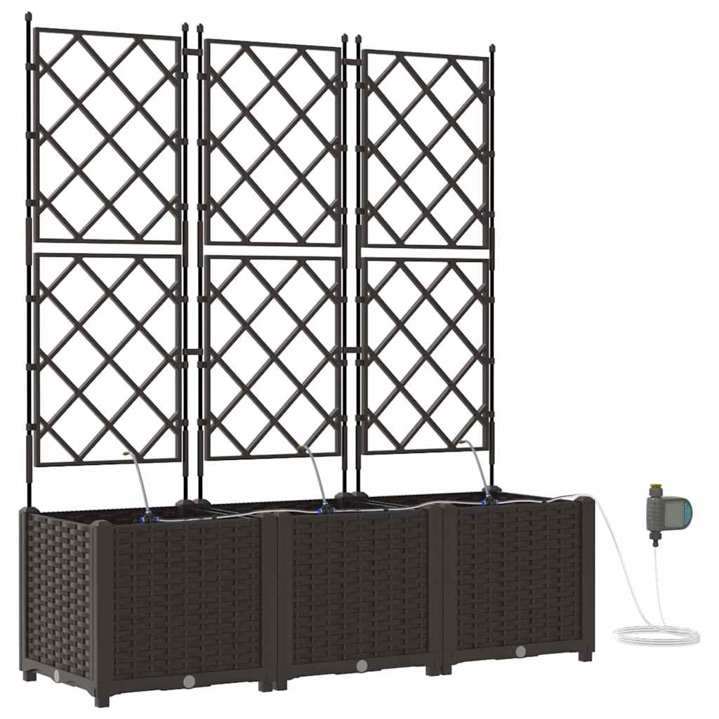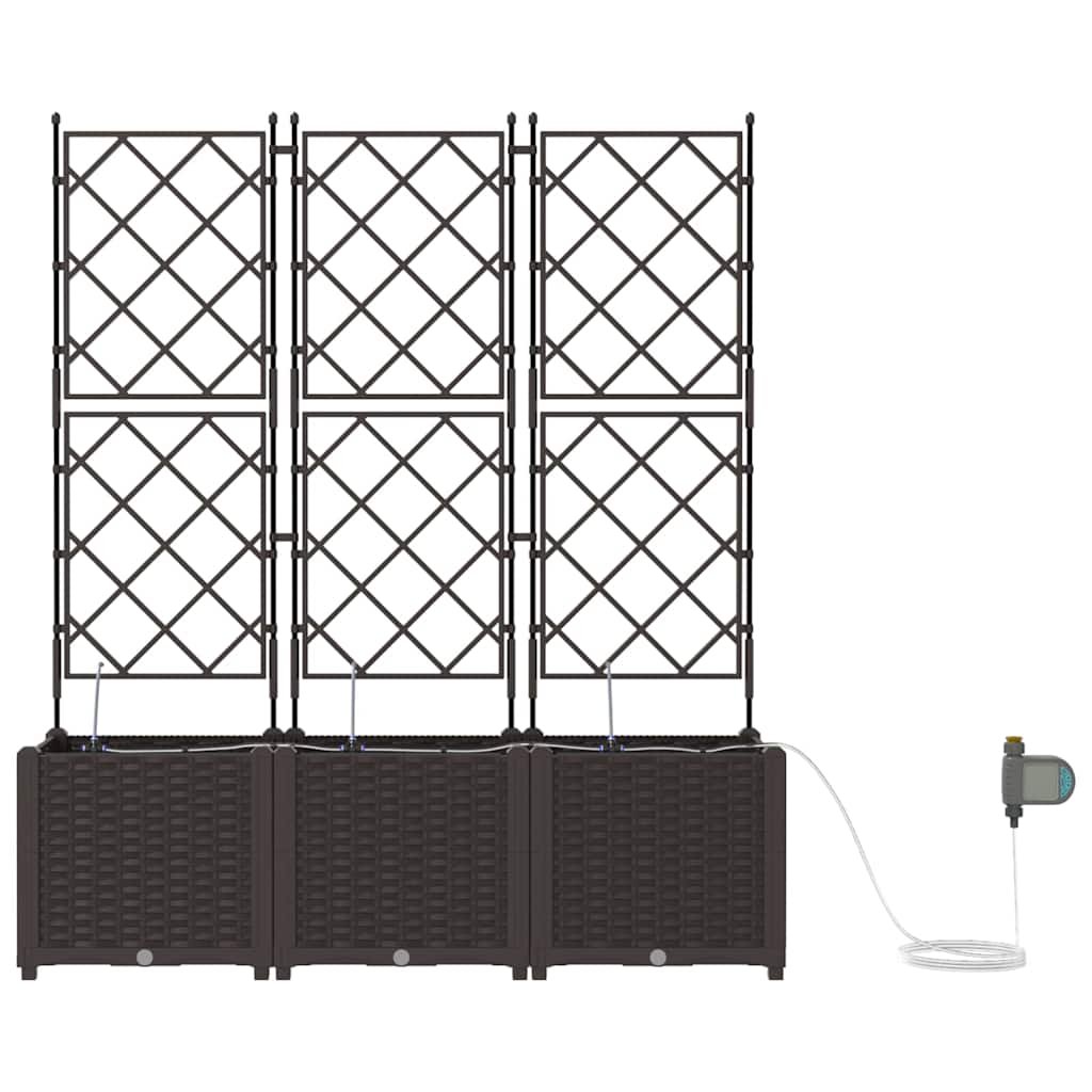 Materiál konstrukce: Zahradní květináč je vyroben z oceli odolné vůči UV záření, což zajišťuje trvanlivost a odolnost vůči povětrnostním změnám. Tato volba materiálu nabízí robustní ochranu, která vhodně odolává silnému slunečnímu záření a sezónním výkyvům, udržuje vaše rostliny naživu po celý rok bez kompromisů v strukturální integritě květináče.,Integrovaný zavlažovací systém: Tento zahradní květináč je vybaven pokročilým zavlažovacím systémem, který odstraňuje nejistotu při zalévání. Využívající integrované kanály, efektivně distribuuje vodu přímo k kořenům rostlin, což zajišťuje, že dostávají dostatečnou vlhkost, zatímco snižuje plýtvání vodou a podporuje zdravější růst.,Moderní design: Ukazuje chic tkaný vzor, elegantní jednoduchost tohoto květináče ladí s moderním estetickým pojetím. Jeho odrazivý matný povrch dodává jemný dotek, což mu umožňuje bez problémů zapadnout do různorodých venkovních prostředí i při zachování moderního stylu s čistými, decentními liniemi.,Všestranné použití: Ideální pro venkovní umístění, tento květináč má jak dekorativní, tak praktické účely. Jeho prostorný interiér pojme různé druhy rostlin, od bujných kapradin po živé květiny, což z něj činí vhodný pro sezónní přechody nebo celoroční použití, poskytující prvotřídní zkušenost s výsadbou pro koníčky i zkušené zahradníky.,Údržba a péče: Aby si zachoval svůj prvotřídní vzhled, umístěte tento květináč na stabilním místě a vyhněte se vystavení přímému slunečnímu záření po delší dobu. Pravidelně čistěte suchým hadříkem a zajišťujte spojení při sestavování, aby se zaručila stabilita a estetická hodnota v průběhu času.- Barva: Hnědá