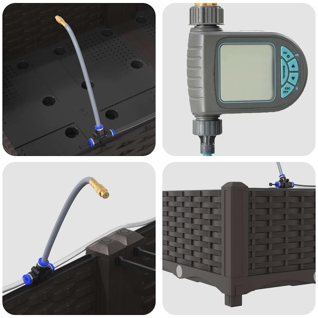 Materiál konstrukce: Zahradní květináč je vyroben z oceli odolné vůči UV záření, což zajišťuje trvanlivost a odolnost vůči povětrnostním změnám. Tato volba materiálu nabízí robustní ochranu, která vhodně odolává silnému slunečnímu záření a sezónním výkyvům, udržuje vaše rostliny naživu po celý rok bez kompromisů v strukturální integritě květináče.,Integrovaný zavlažovací systém: Tento zahradní květináč je vybaven pokročilým zavlažovacím systémem, který odstraňuje nejistotu při zalévání. Využívající integrované kanály, efektivně distribuuje vodu přímo k kořenům rostlin, což zajišťuje, že dostávají dostatečnou vlhkost, zatímco snižuje plýtvání vodou a podporuje zdravější růst.,Moderní design: Ukazuje chic tkaný vzor, elegantní jednoduchost tohoto květináče ladí s moderním estetickým pojetím. Jeho odrazivý matný povrch dodává jemný dotek, což mu umožňuje bez problémů zapadnout do různorodých venkovních prostředí i při zachování moderního stylu s čistými, decentními liniemi.,Všestranné použití: Ideální pro venkovní umístění, tento květináč má jak dekorativní, tak praktické účely. Jeho prostorný interiér pojme různé druhy rostlin, od bujných kapradin po živé květiny, což z něj činí vhodný pro sezónní přechody nebo celoroční použití, poskytující prvotřídní zkušenost s výsadbou pro koníčky i zkušené zahradníky.,Údržba a péče: Aby si zachoval svůj prvotřídní vzhled, umístěte tento květináč na stabilním místě a vyhněte se vystavení přímému slunečnímu záření po delší dobu. Pravidelně čistěte suchým hadříkem a zajišťujte spojení při sestavování, aby se zaručila stabilita a estetická hodnota v průběhu času.- Barva: Hnědá