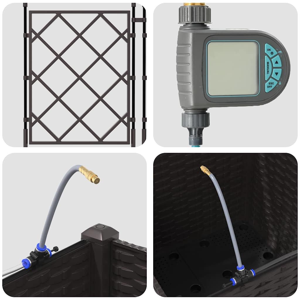 Materiál konstrukce: Zahradní květináč je vyroben z oceli odolné vůči UV záření, což zajišťuje trvanlivost a odolnost vůči povětrnostním změnám. Tato volba materiálu nabízí robustní ochranu, která vhodně odolává silnému slunečnímu záření a sezónním výkyvům, udržuje vaše rostliny naživu po celý rok bez kompromisů v strukturální integritě květináče.,Integrovaný zavlažovací systém: Tento zahradní květináč je vybaven pokročilým zavlažovacím systémem, který odstraňuje nejistotu při zalévání. Využívající integrované kanály, efektivně distribuuje vodu přímo k kořenům rostlin, což zajišťuje, že dostávají dostatečnou vlhkost, zatímco snižuje plýtvání vodou a podporuje zdravější růst.,Moderní design: Ukazuje chic tkaný vzor, elegantní jednoduchost tohoto květináče ladí s moderním estetickým pojetím. Jeho odrazivý matný povrch dodává jemný dotek, což mu umožňuje bez problémů zapadnout do různorodých venkovních prostředí i při zachování moderního stylu s čistými, decentními liniemi.,Všestranné použití: Ideální pro venkovní umístění, tento květináč má jak dekorativní, tak praktické účely. Jeho prostorný interiér pojme různé druhy rostlin, od bujných kapradin po živé květiny, což z něj činí vhodný pro sezónní přechody nebo celoroční použití, poskytující prvotřídní zkušenost s výsadbou pro koníčky i zkušené zahradníky.,Údržba a péče: Aby si zachoval svůj prvotřídní vzhled, umístěte tento květináč na stabilním místě a vyhněte se vystavení přímému slunečnímu záření po delší dobu. Pravidelně čistěte suchým hadříkem a zajišťujte spojení při sestavování, aby se zaručila stabilita a estetická hodnota v průběhu času.- Barva: Hnědá