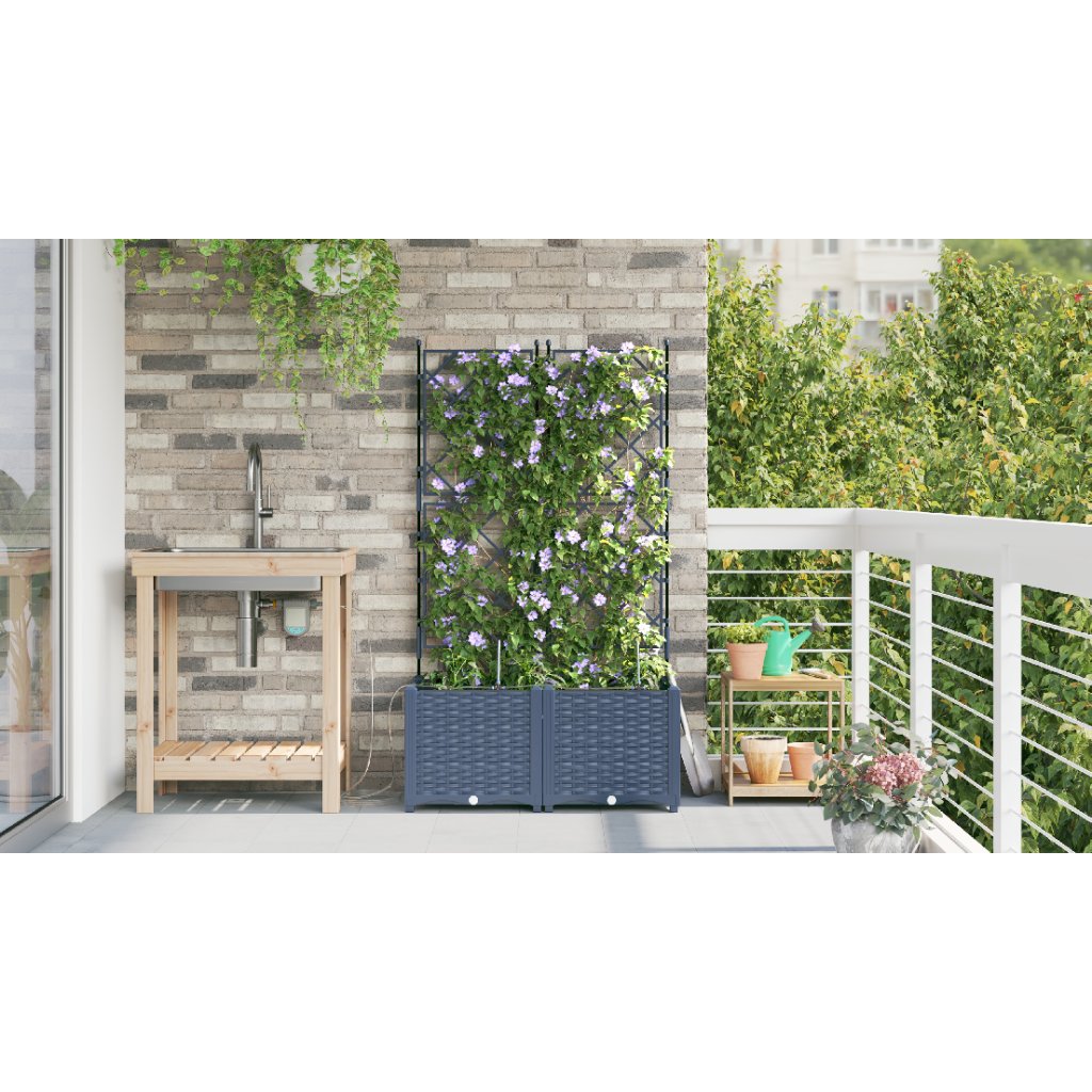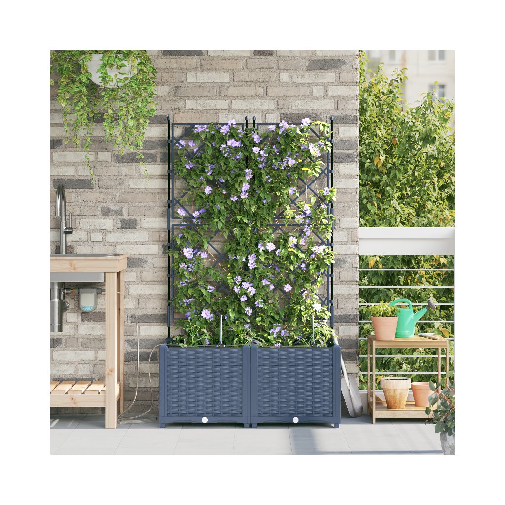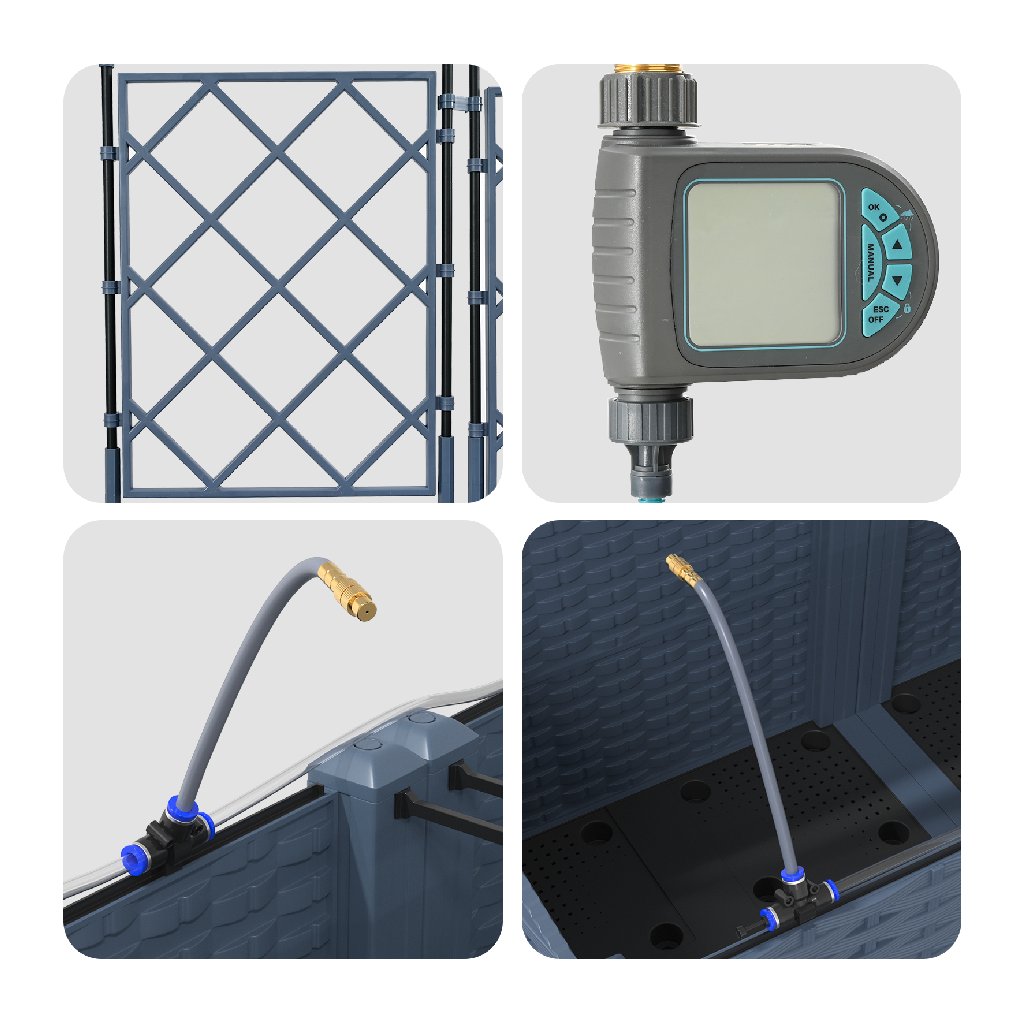 Materiál konstrukce: Zahradní květináč je vyroben z oceli odolné vůči UV záření, což zajišťuje trvanlivost a odolnost vůči povětrnostním změnám. Tato volba materiálu nabízí robustní ochranu, která vhodně odolává silnému slunečnímu záření a sezónním výkyvům, udržuje vaše rostliny naživu po celý rok bez kompromisů v strukturální integritě květináče.,Integrovaný zavlažovací systém: Tento zahradní květináč je vybaven pokročilým zavlažovacím systémem, který odstraňuje nejistotu při zalévání. Využívající integrované kanály, efektivně distribuuje vodu přímo k kořenům rostlin, což zajišťuje, že dostávají dostatečnou vlhkost, zatímco snižuje plýtvání vodou a podporuje zdravější růst.,Moderní design: Ukazuje chic tkaný vzor, elegantní jednoduchost tohoto květináče ladí s moderním estetickým pojetím. Jeho odrazivý matný povrch dodává jemný dotek, což mu umožňuje bez problémů zapadnout do různorodých venkovních prostředí i při zachování moderního stylu s čistými, decentními liniemi.,Všestranné použití: Ideální pro venkovní umístění, tento květináč má jak dekorativní, tak praktické účely. Jeho prostorný interiér pojme různé druhy rostlin, od bujných kapradin po živé květiny, což z něj činí vhodný pro sezónní přechody nebo celoroční použití, poskytující prvotřídní zkušenost s výsadbou pro koníčky i zkušené zahradníky.,Údržba a péče: Aby si zachoval svůj prvotřídní vzhled, umístěte tento květináč na stabilním místě a vyhněte se vystavení přímému slunečnímu záření po delší dobu. Pravidelně čistěte suchým hadříkem a zajišťujte spojení při sestavování, aby se zaručila stabilita a estetická hodnota v průběhu času.- Barva: Šedá