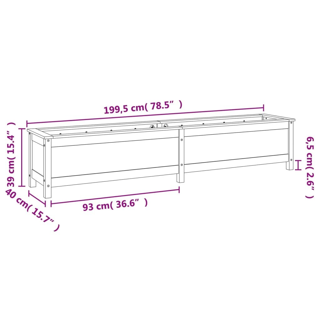 Zahradní vyvýšený záhon bílý 199,5x40x39 cm masivní borovice 825269