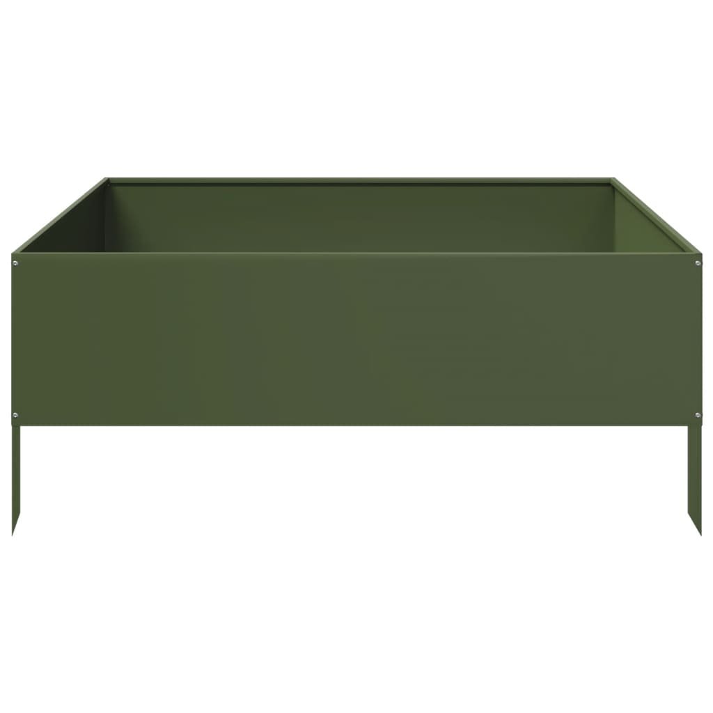 Zahradní vyvýšený záhon olivově zelený 100 x 100 x 25 cm ocel 851034
