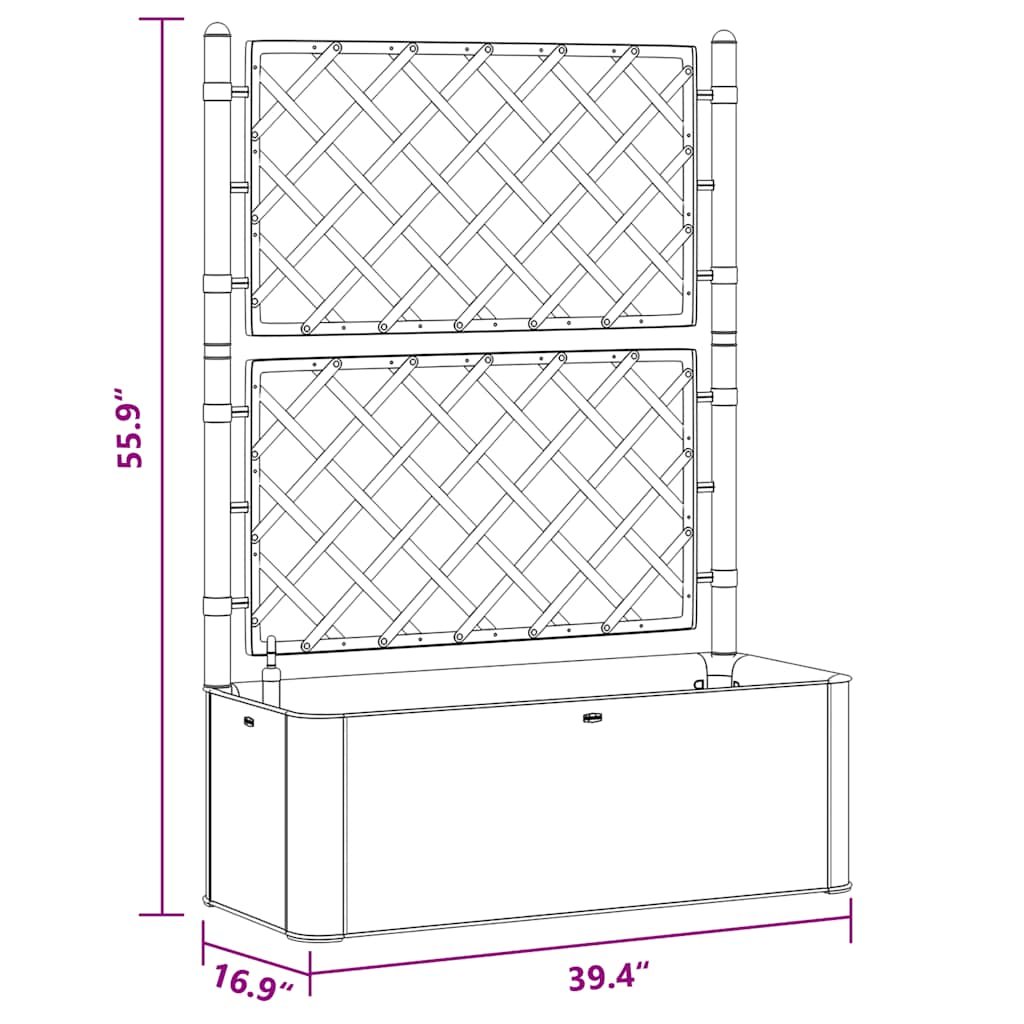 Vytvořte svým květinám krásné pozadí s tímto elegantním, funkčním a jedinečným samozavlažovacím vyvýšeným záhonem! Do tohoto truhlíku s treláží se vejde velké množství zelených rostlin a květin.