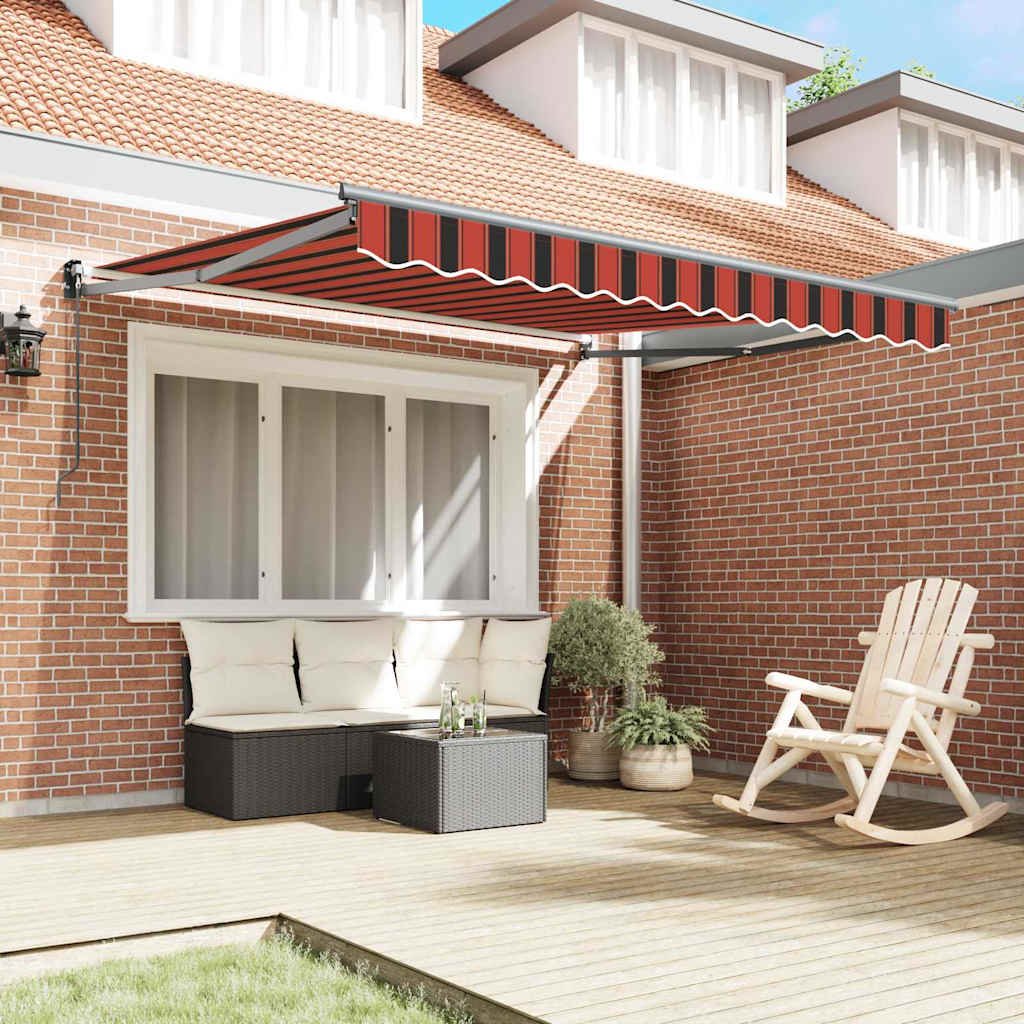 Tahle moderní vysouvací markýza je perfektní doplněk k jakémukoliv venkovnímu prostoru. Živá kombinace oranžové a hnědé dodává zahradám a terasám veselou a elegantní atmosféru. Díky jasným liniím a jednoduchému designu se skvěle hodí k modernímu stylu, což z ní dělá cool volbu pro ochranu před sluncem. Je ideální pro vytvoření stinných míst na slunné terase, a tak si můžeš naplno užívat teplé letní dny.