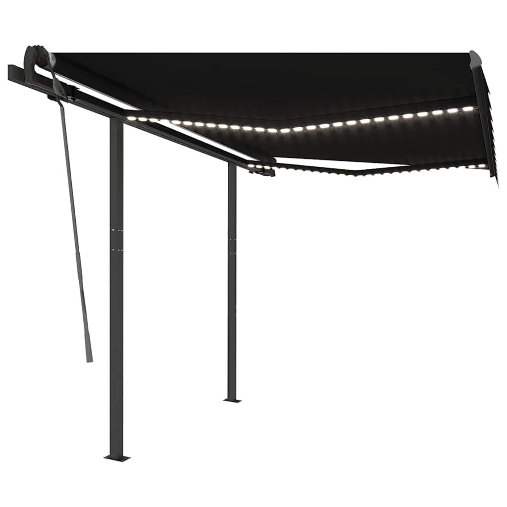 Tato markýza má hliníkový rám s práškovým nástřikem, který nerezaví, je lehký, ale přitom je mimořádně robustní. Pevný železný sloupek jí dodává na stabilitě. Zatahovací stříška je zhotovená z vysokohustotního polyesteru potaženého vrstvou PU, výborně tedy vzdoruje vodě i UV záření. Úhel a výšku si můžete navíc nastavit dle svých konkrétních potřeb. Markýzu snadno roztáhnete a zatáhnete pomocí dlouhé ruční kliky. A co víc, solární LED světla poskytují energeticky úsporné osvětlení v noci.