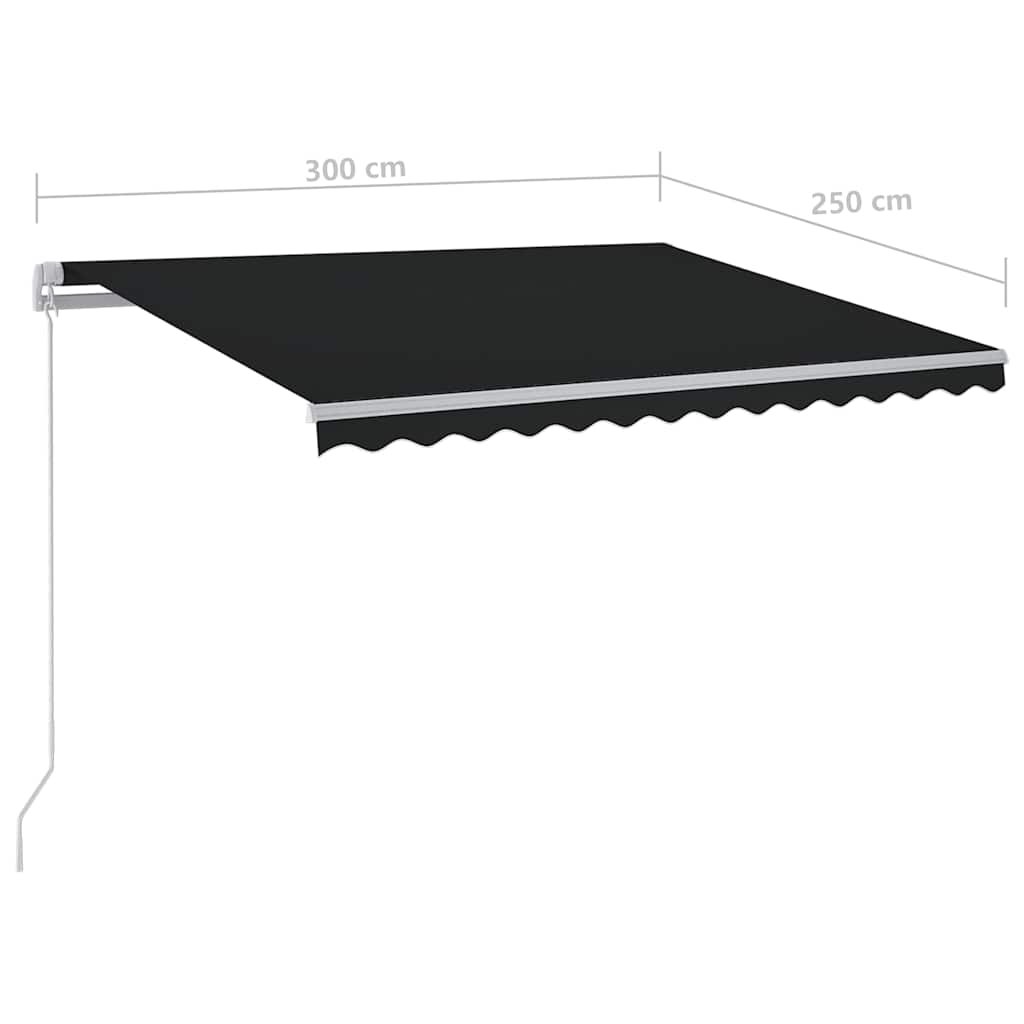 Ručně zatahovací markýza s LED světlem 300 x 250 cm antracitová 3068864