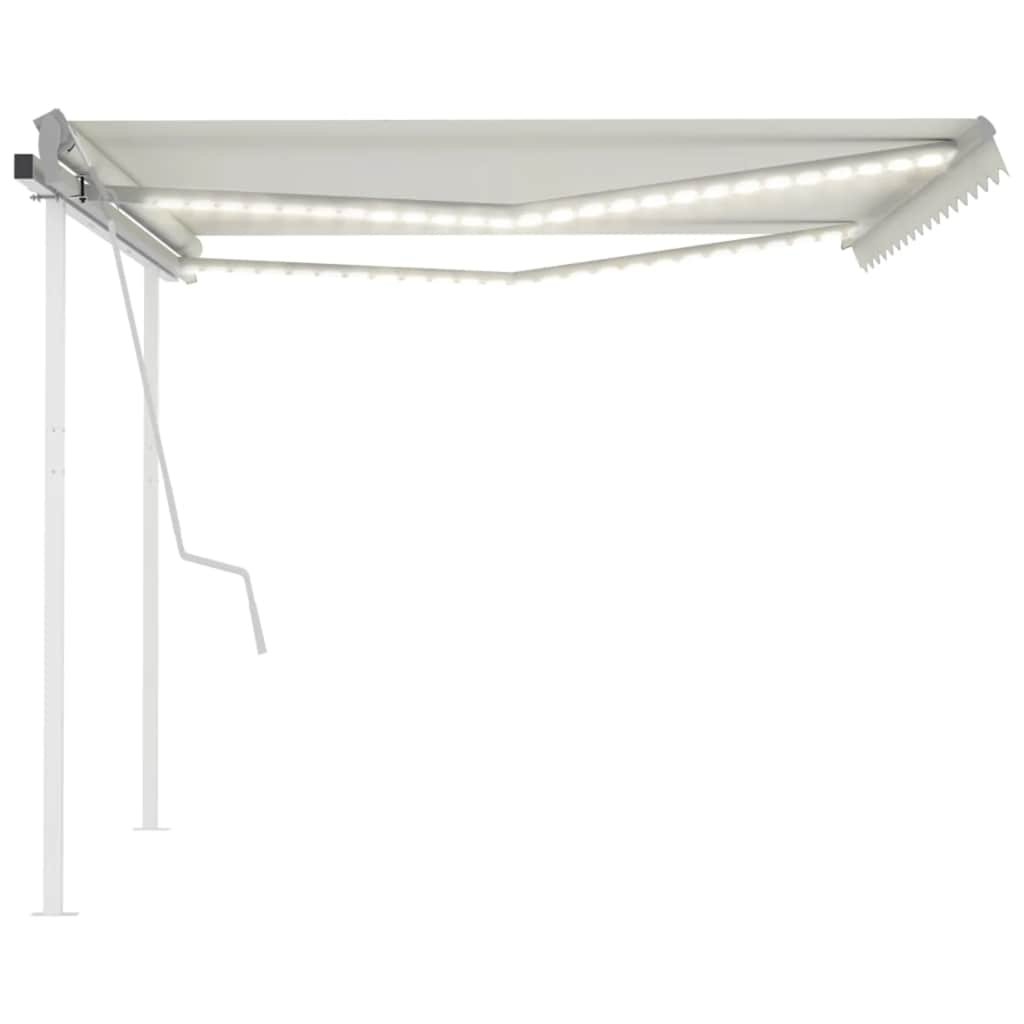 Zahradní markýza má práškově lakovaný hliníkový rám, který nerezaví, je lehký, a přitom tvoří velice pevnou konstrukci. Robustní železné sloupky jí přidávají na stabilitě. Zatahovací stříška je zhotovená z vysokohustotního polyesteru potaženého vrstvou PU, výborně tedy vzdoruje vodě i UV záření. Úhel a výšku si můžete navíc nastavit dle svých konkrétních potřeb. Markýzu snadno roztáhnete a zatáhnete pomocí dlouhé ruční kliky. A co víc, solární LED světla poskytují energeticky úsporné osvětlení v noci.