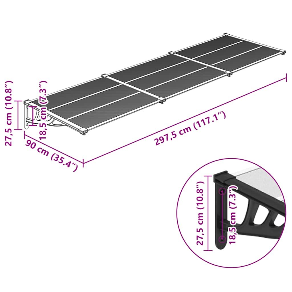 Vchodová stříška černá a průhledná 297,5 x 90 cm polykarbonát 153687