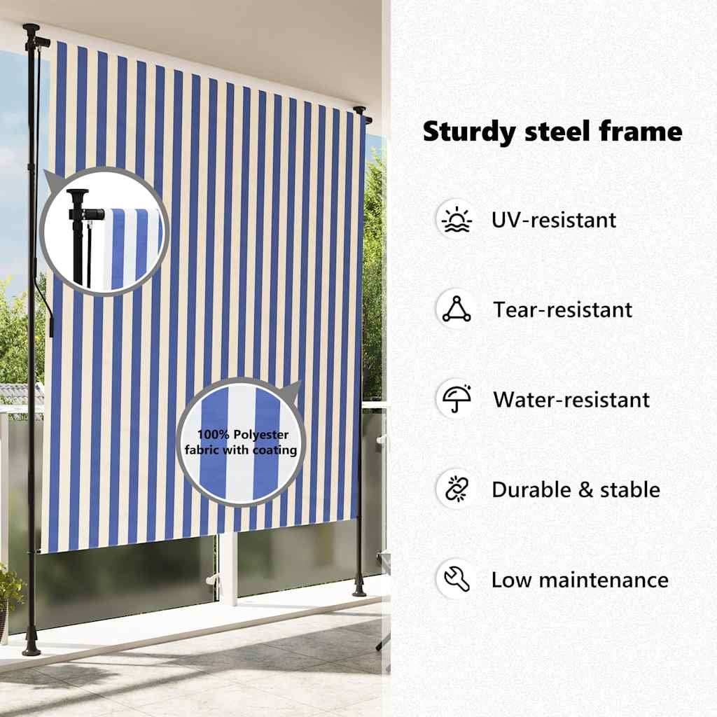 - Materiál s dlouhou životností: Rám zástěny je vyroben z oceli, která je robustní a hodně toho vydrží. Tkanina s PU povrchovou úpravou je odolná proti UV záření. Ochrání vaši rodinu i hosty před UV zářením a oslňujícím slunečním světlem.
