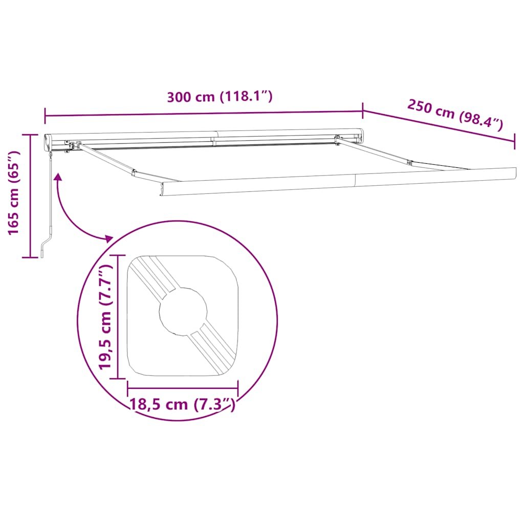 Zatahovací markýza antracitová a bílá 3 x 2,5 m textil a hliník 3216123