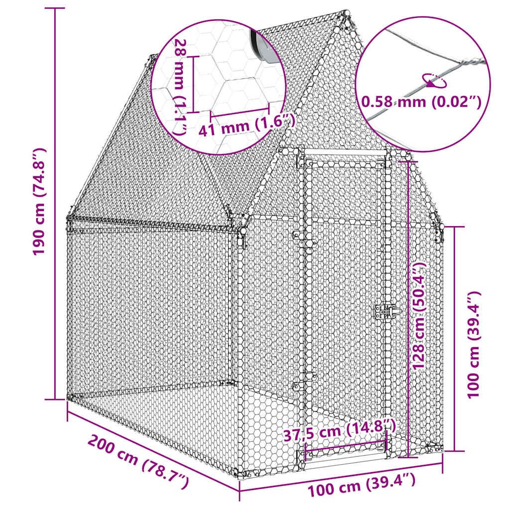 Klec pro kuřata stříbrná 200 x 100 x 190 cm pozinkovaná ocel 172550